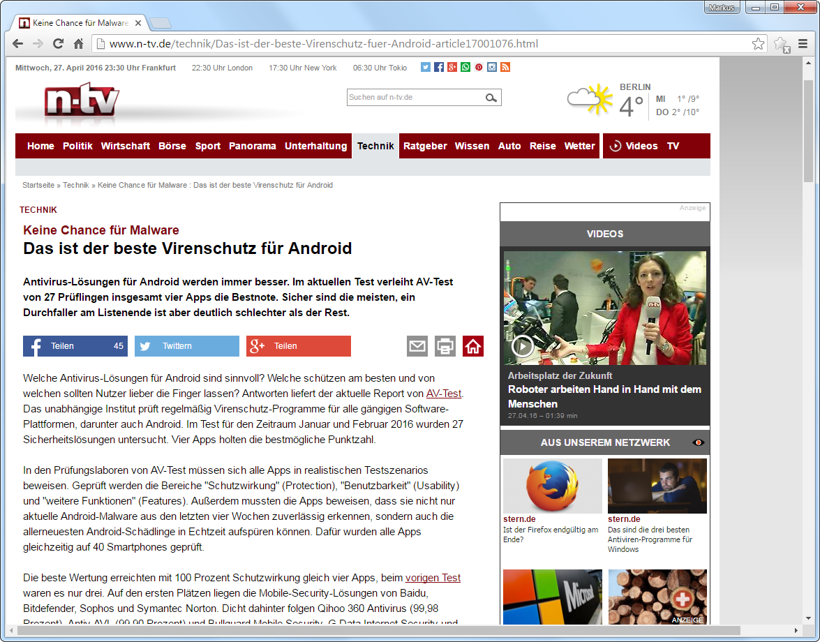 Der aktuelle Medienspiegel gibt eine kleine Übersicht über die wichtigsten Veröffentlichungen im ersten Quartal 2016. Im Fokus standen der Test von Schutzpaketen unter Windows 10, Virenscanner im Repair-Test, sowie Scanner für Windows 7 und 8.1. Auch die Sicherheit für Android-Geräte war bei vielen Medien ein großes Thema.