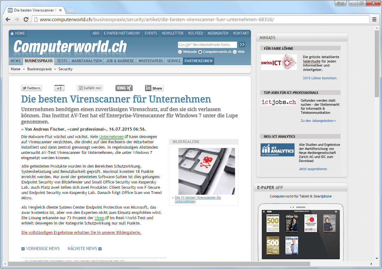 AV-TEST veröffentlicht laufend neue Testergebnisse zu Internet-Security-Suiten unter Windows oder Mac für private Nutzer, Schutzlösungen für Firmennetzwerke oder Sicherheits-Apps für Android. Dazu kommen noch Spezial-Tests, wie zur Sicherheit von Smart-Home-Geräten oder die beste Kinderschutz-Software für Windows und Android. Viele Medien haben die Testergebnisse aufgegriffen und als Basis für eigene Artikel verwendet. Hier ist eine kurze Zusammenfassung aller Artikel der letzten Monate.