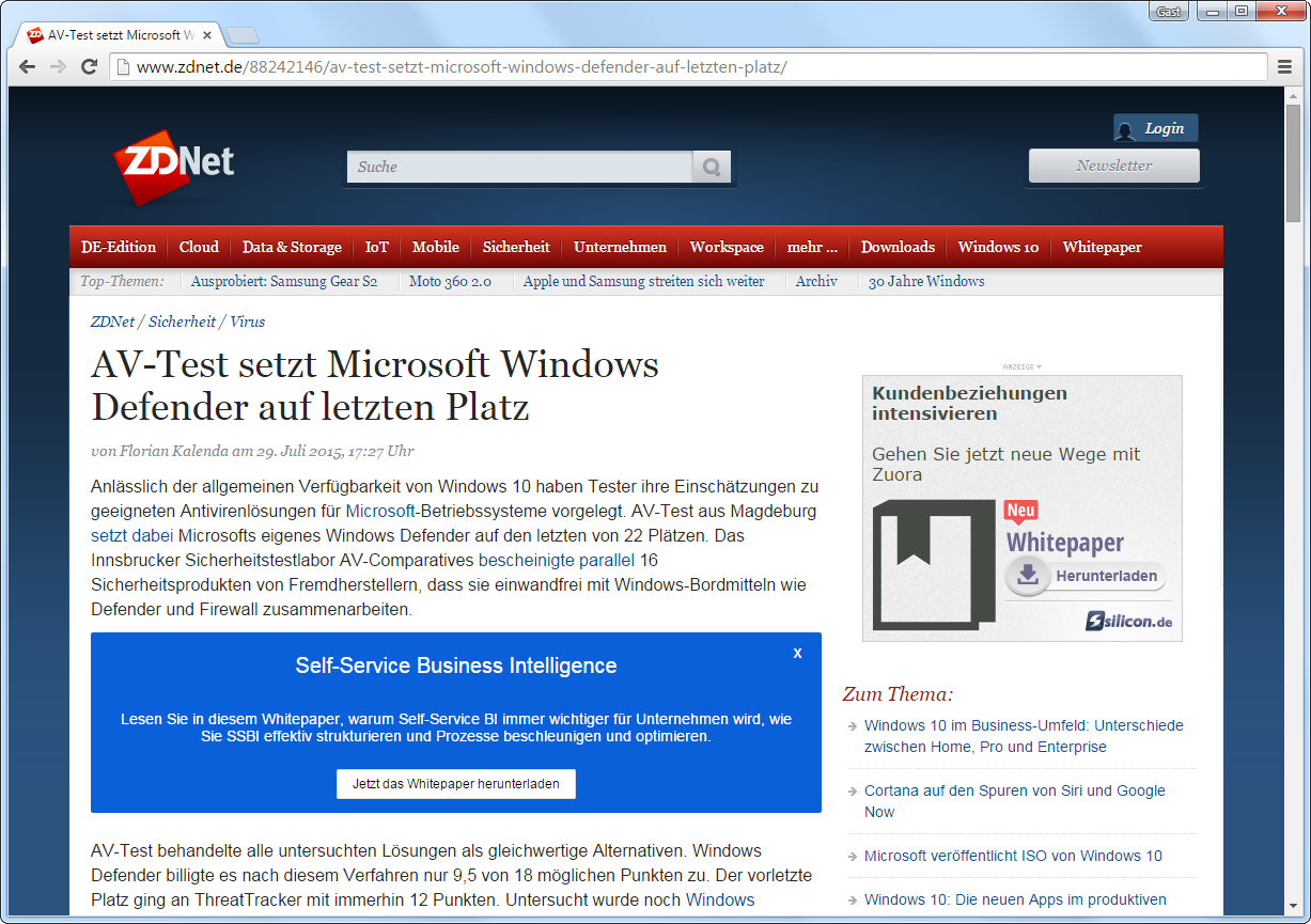 AV-Test setzt Microsoft Windows Defender auf letzten Platz