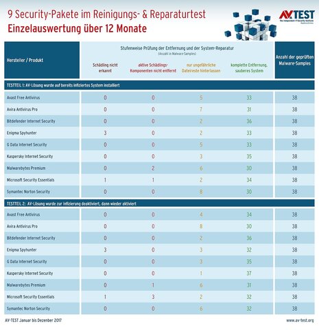 Security-Suiten- Reinigungs- und Repair-Test über 12 Monate