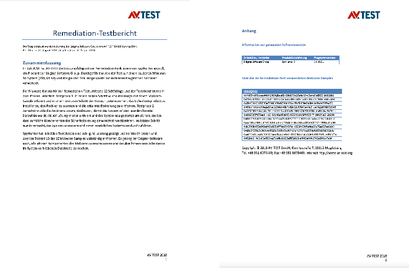 SpyHunter hat in beiden Testphasen eine sehr gute Leistung gezeigt und konnte im ersten und zweiten Testteil 10 der 12 Malware-Samples vollständig entfernen. Es gelang der Enigma-Software auch, alle aktiven Komponenten der Malware zu neutralisieren und darüber hinaus sämtliche davon im System verbliebenen Dateireste zu löschen.
