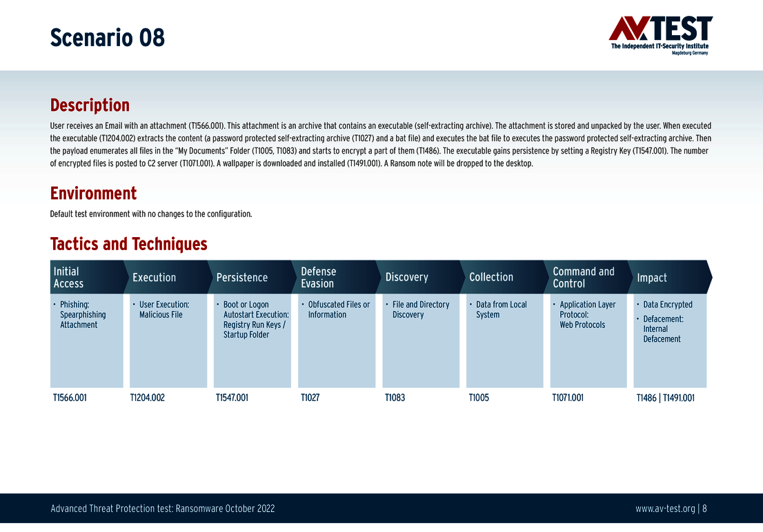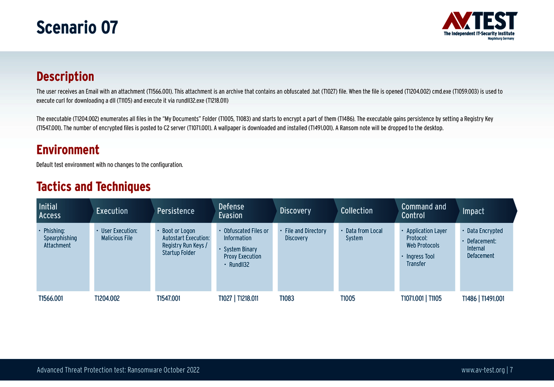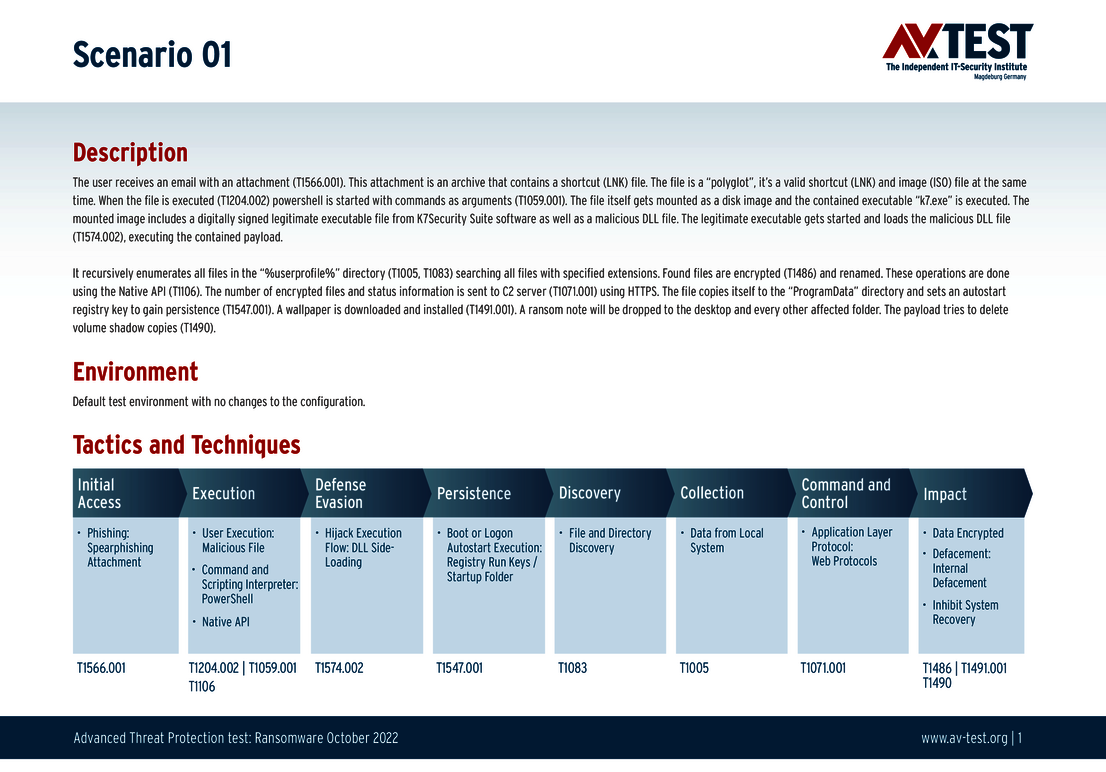 Neben den klassischen Erkennungstests prüft das Labor von AV-TEST viele Schutzprodukte für Endanwender und Unternehmen in einem Live-Test gegen Ransomware und deren besonders perfide technische Raffinessen. In der aktuellen Untersuchung nutzt das Labor folgende Angriffstechniken, wie sie zum Beispiel auch von Emotet genutzt werden: