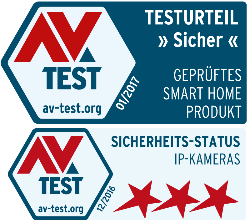 AV-TEST prüft IP-Kameras und andere IoT-Geräte darum in umfangreichen Sicherheitstests auf verschlüsselte Kommunikation, sichere Authentifizierung und die Abwehr externer Angriffe. Sichere IP-Kameras und andere IoT-Geräte erkennen Sie an den Sicherheitszertifikaten des AV-TEST Institutes.
