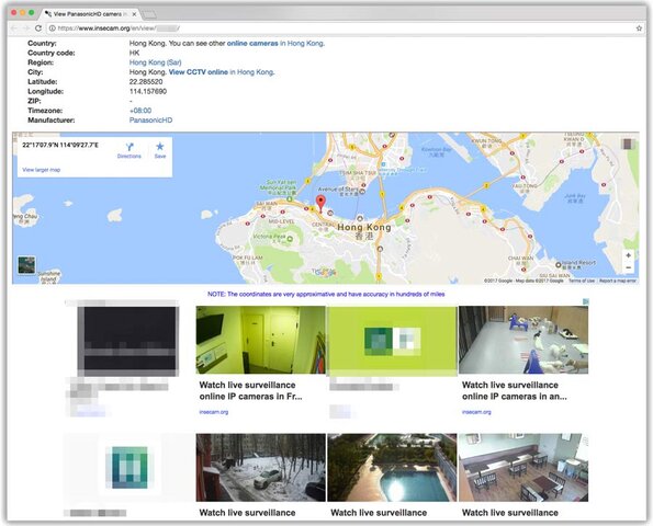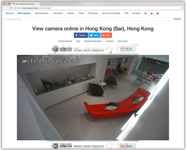 Die Website „Insecam“ zeigt IP-Kameras, die von ihren Besitzern mit dem Internet verbunden wurden. Allerdings bieten die eingesetzten Geräte und Cloud-Plattformen entweder keinen Kennwortschutz oder die Nutzer haben diesen nicht aktiviert. Und so lassen sich hier neben Überwachungskameras aus Geschäften auch viele Geräte finden, die mitten in das Privatleben ihrer Nutzer zielen. Kinderzimmer, Hauseingänge und Garagen sowie Ansichten von mit hohen Sichtschutzzäunen geschützten Gärten, alles ist auf der Website zu finden. Pikantes Detail: Insecam zeigt neben den Echtzeit-Streams der Kameras zudem deren Standorte auf Karten von Google Maps an. So ist es für Einbrecher ein Leichtes, zukünftige Opfer nicht nur auszuspähen, sondern auch zu orten.