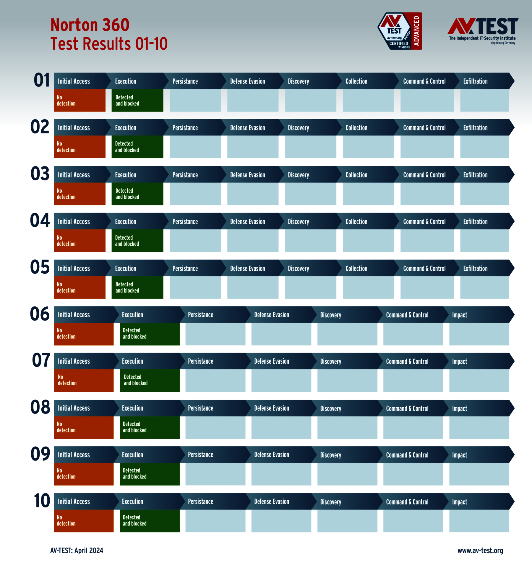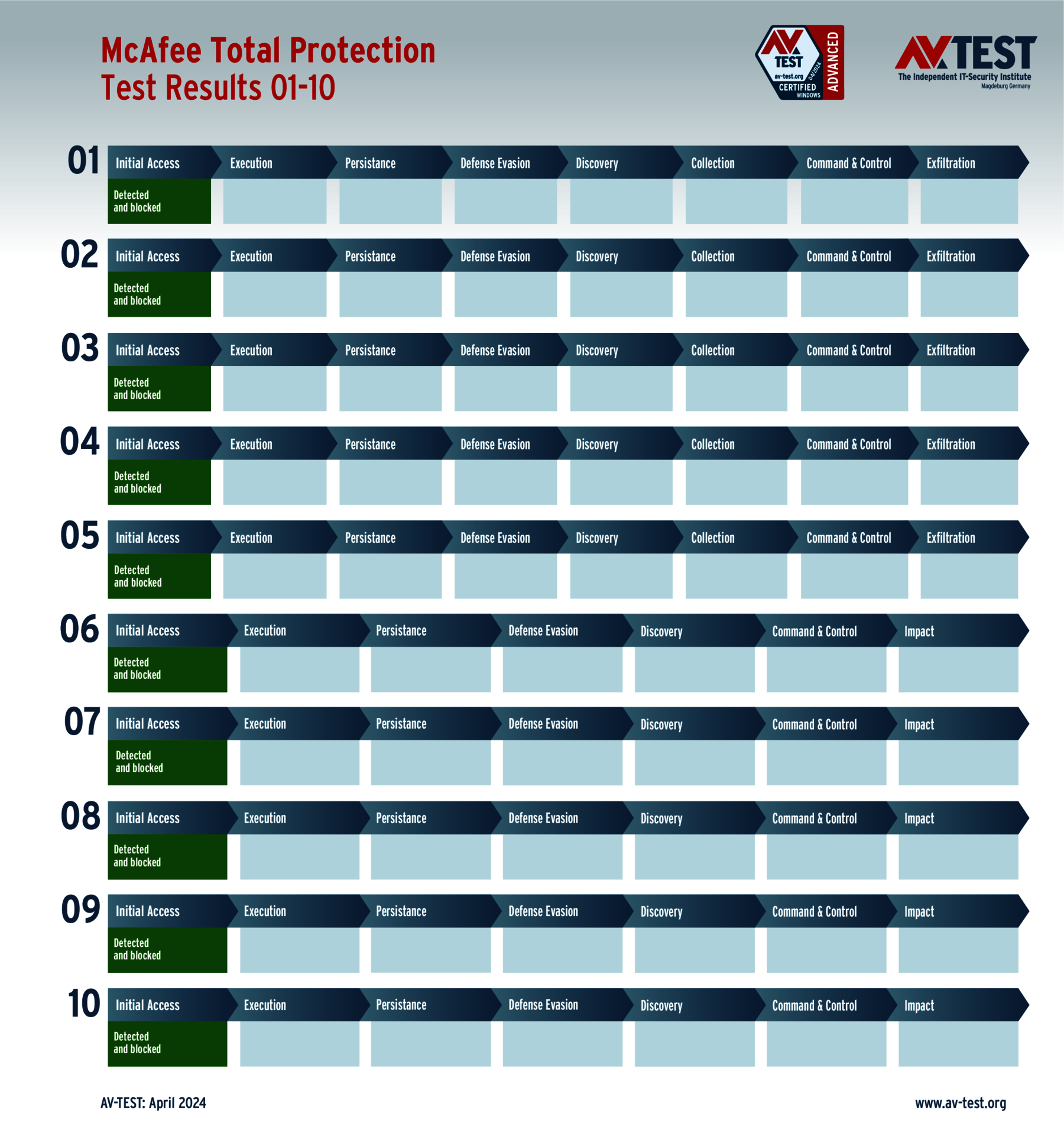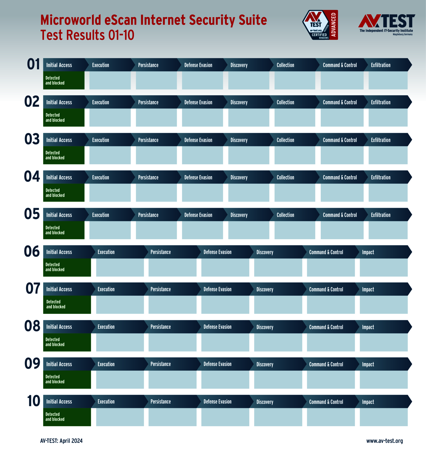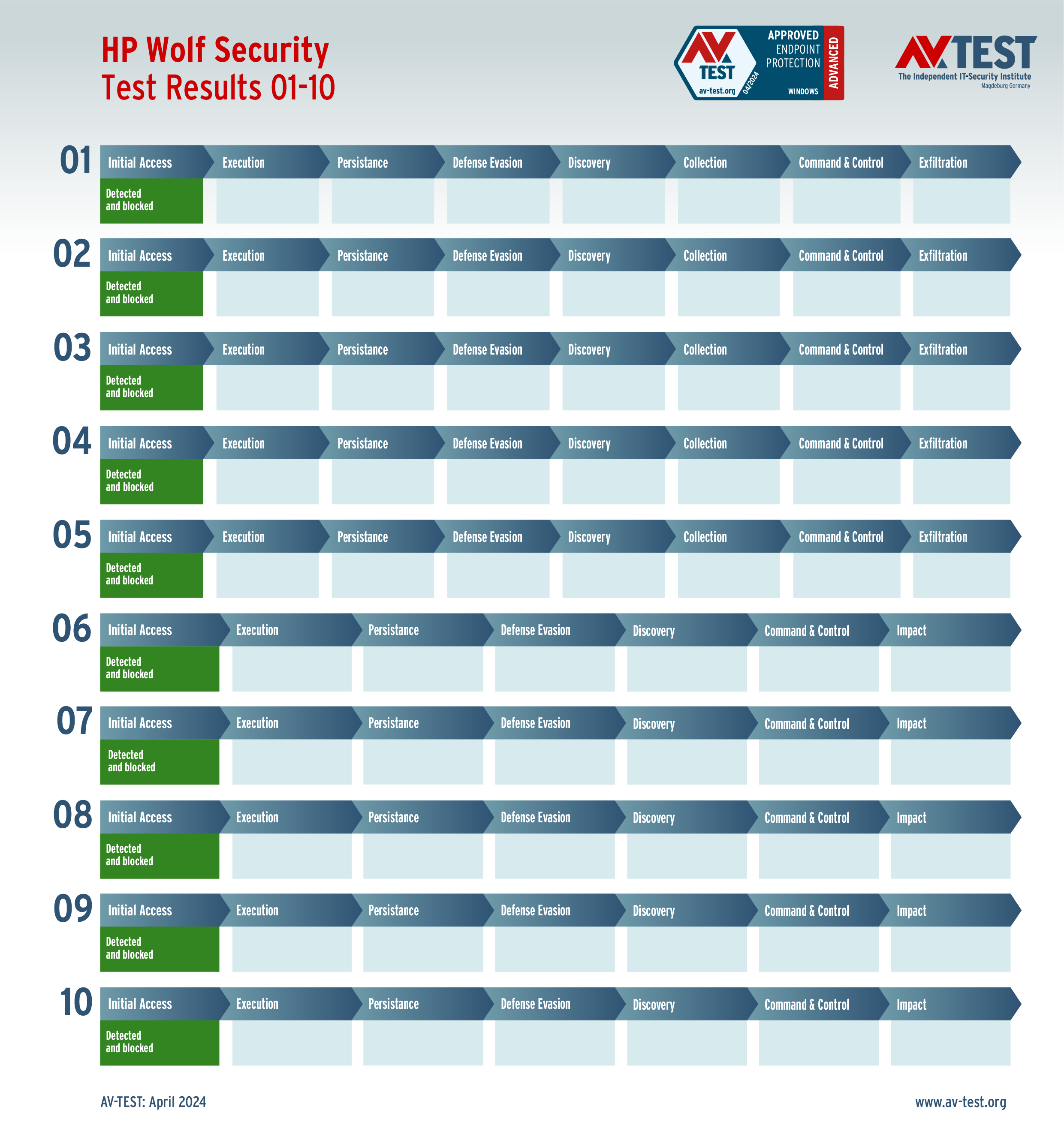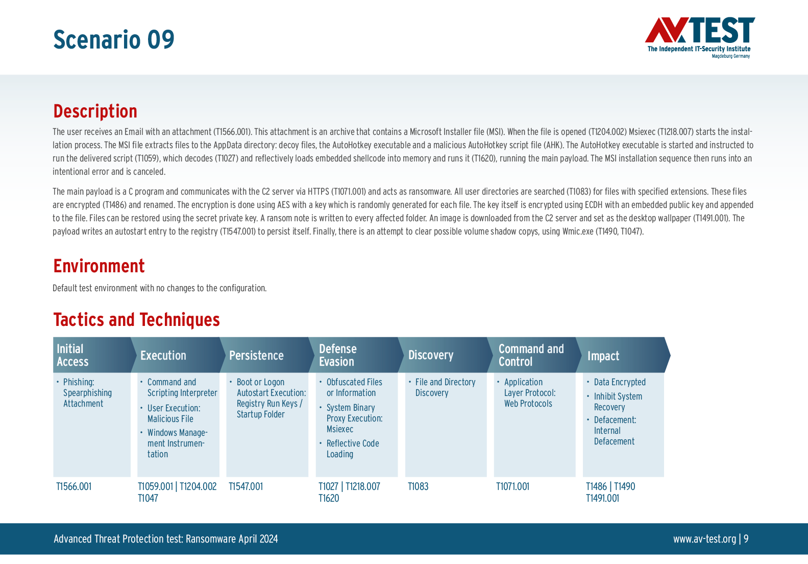 Alle Angriffs-Szenarien sind dokumentiert nach dem Standard der MITRE ATT&CK-Datenbank. Die einzelnen Unterpunkte, z.B. „T1566.001,“ stehen in der MITRE-Datenbank für „Techniques“ unter „Phishing: Spearphishing Attachment“. Jeder Testschritt ist so unter Fachleuten definiert und lässt sich nachvollziehen. Zusätzlich sind alle Angriffstechniken erklärt und wie dabei die Malware zum Zuge kommt.