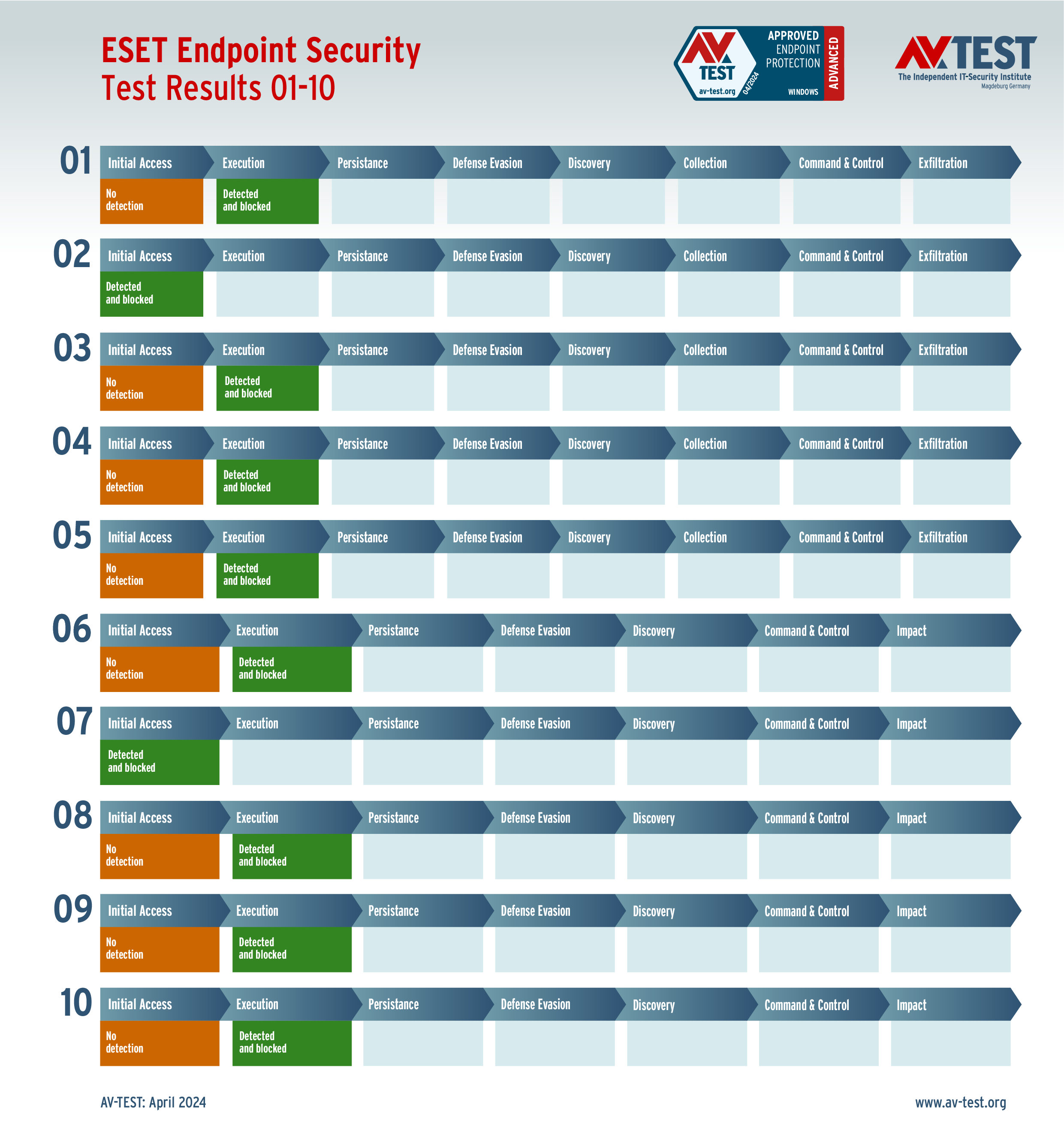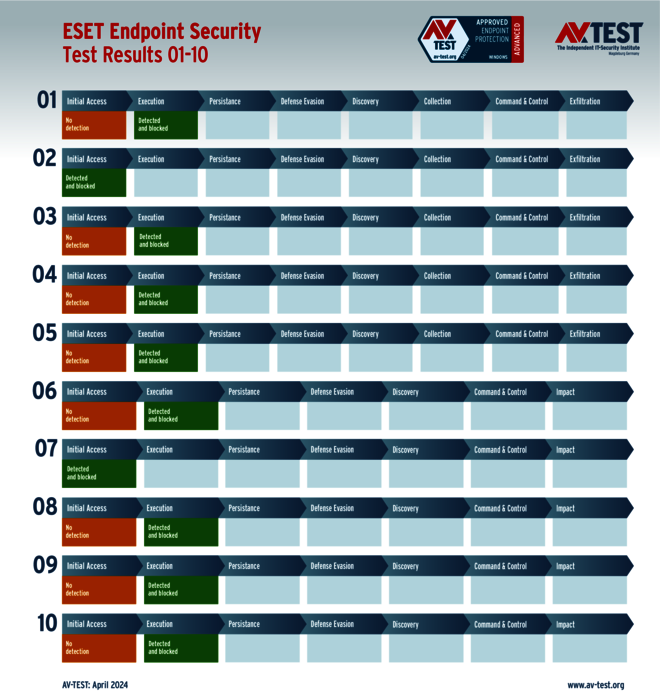 Das Schutzpaket von ESET erhält zwar 30 von 35 Punkten, muss sich aber in einem Fall trotz Erkennung des Angriffs am Ende einer Ransomware geschlagen geben – die Daten sind verschlüsselt! In einem weiteren Fall kann sich ein Infostealer zwar trotz Erkennung weiter ausbreiten, wird aber in späteren Schritten von einer internen Schutztechnik aufgehalten.