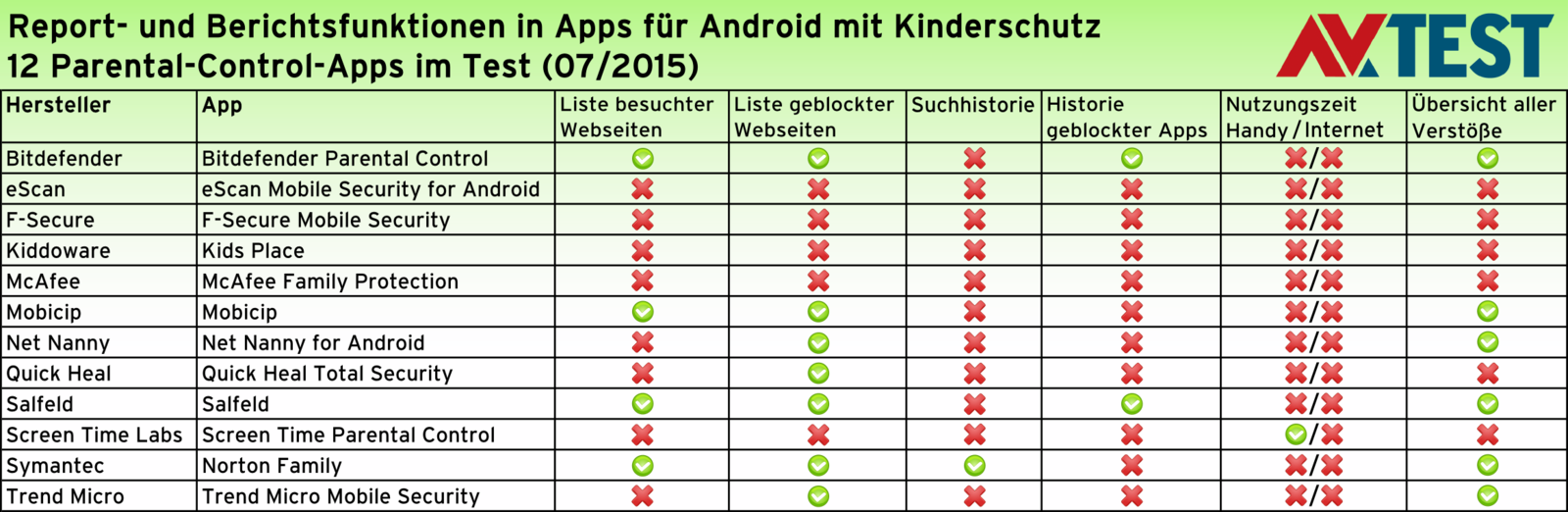 Der größte Teil verkaufter Smartphones arbeitet mit Android. Daher bietet der Markt auch einiges an Kinderschutz-Software an. Diese steckt in vielen Security-Apps bereits als Schutz-Modul. Es gibt aber auch separate Apps, die sich um nichts anderes kümmern als den Kinderschutz. Das Labor von AV-TEST hat die Arbeitsweise von insgesamt 12 Apps untersucht. 4 davon sind Security-Pakete mit Schutz-Modulen für Kinder, 8 sind reine Kinderschutz-Apps. Die Apps sind von Bitdefender, eScan, F-Secure, Kiddoware, McAfee, Mobicip, Net Nanny, Quick Heal, Salfeld, Screen Time Labs, Symantec und Trend Micro.