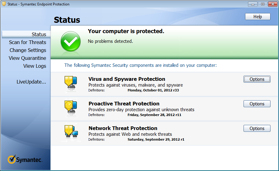 During September and October 2012 we continuously evaluated 8 endpoint protection products using settings as provided by the vendor. We always used the most current publicly-available version of all products for the testing. They were allowed to update themselves at any time and query their in-the-cloud services. We focused on realistic test scenarios and challenged the products against real-world threats. Products had to demonstrate their capabilities using all components and protection layers.