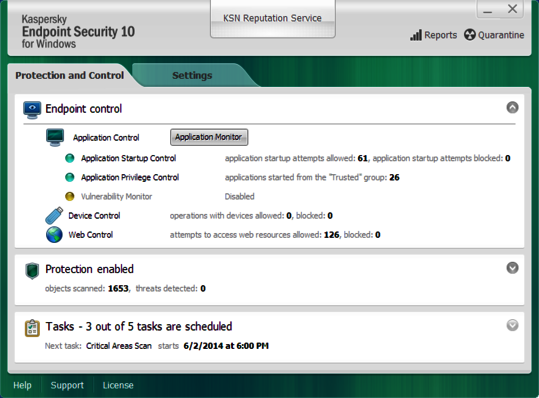 During May and June 2014 we continuously evaluated 9 endpoint protection products using settings as provided by the vendor. We always used the most current publicly-available version of all products for the testing. They were allowed to update themselves at any time and query their in-the-cloud services. We focused on realistic test scenarios and challenged the products against real-world threats. Products had to demonstrate their capabilities using all components and protection layers.