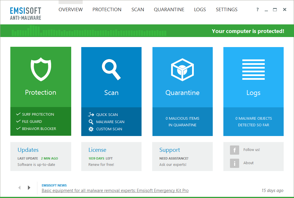 During March and April 2016 we continuously evaluated 22 home user security products using their default settings. We always used the most current publicly-available version of all products for the testing. They were allowed to update themselves at any time and query their in-the-cloud services. We focused on realistic test scenarios and challenged the products against real-world threats. Products had to demonstrate their capabilities using all components and protection layers.