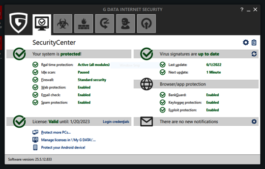 During May and June 2022 we continuously evaluated 19 home user security products using their default settings. We always used the most current publicly-available version of all products for the testing. They were allowed to update themselves at any time and query their in-the-cloud services. We focused on realistic test scenarios and challenged the products against real-world threats. Products had to demonstrate their capabilities using all components and protection layers.
