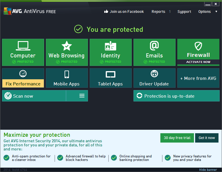 During July and August 2014 we continuously evaluated 24 home user security products using their default settings. We always used the most current publicly-available version of all products for the testing. They were allowed to update themselves at any time and query their in-the-cloud services. We focused on realistic test scenarios and challenged the products against real-world threats. Products had to demonstrate their capabilities using all components and protection layers.