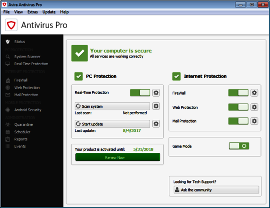 During July and August 2017 we continuously evaluated 18 home user security products using their default settings. We always used the most current publicly-available version of all products for the testing. They were allowed to update themselves at any time and query their in-the-cloud services. We focused on realistic test scenarios and challenged the products against real-world threats. Products had to demonstrate their capabilities using all components and protection layers.