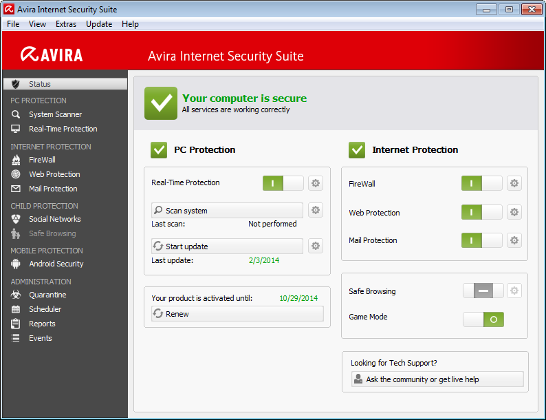 During January and February 2014 we continuously evaluated 25 home user security products using their default settings. We always used the most current publicly-available version of all products for the testing. They were allowed to update themselves at any time and query their in-the-cloud services. We focused on realistic test scenarios and challenged the products against real-world threats. Products had to demonstrate their capabilities using all components and protection layers.