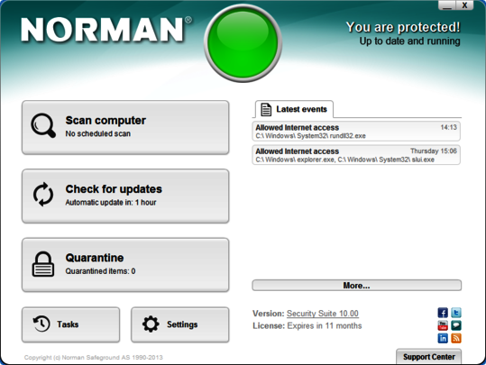 During January and February 2013 we continuously evaluated 26 home user security products using their default settings. We always used the most current publicly-available version of all products for the testing. They were allowed to update themselves at any time and query their in-the-cloud services. We focused on realistic test scenarios and challenged the products against real-world threats. Products had to demonstrate their capabilities using all components and protection layers.