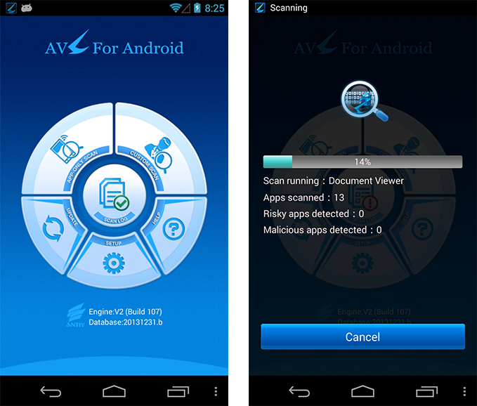 During January 2014 we evaluated 30 mobile security products for Android using their default settings. We always used the most current version of all products for the testing. They were allowed to update themselves at any time and query their in-the-cloud services. We focused on malware detection and usability, including performance and false positives. Products had to demonstrate their capabilities using all components and protection layers.