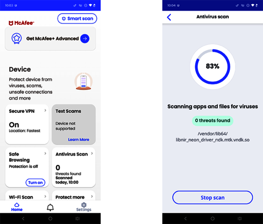 Wi-Fi Advisor/Check: Examines whether the Wi-Fi connection is secure or vulnerable