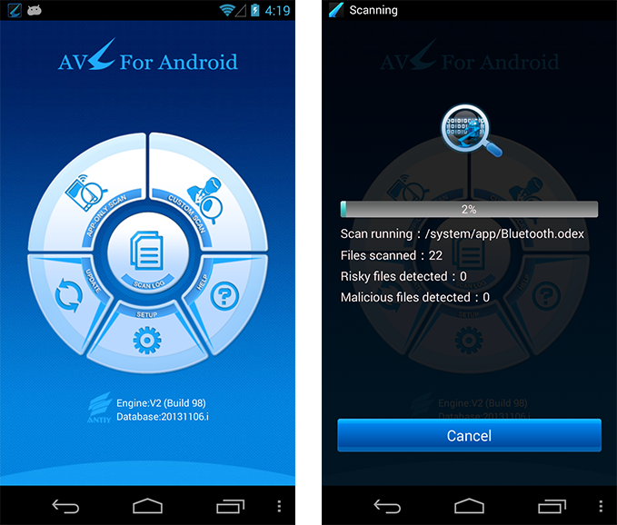 During November 2013 we evaluated 28 mobile security products for Android using their default settings. We always used the most current version of all products for the testing. They were allowed to update themselves at any time and query their in-the-cloud services. We focused on malware detection and usability, including performance and false positives. Products had to demonstrate their capabilities using all components and protection layers.