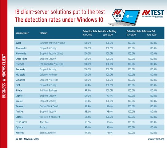 The market of security solutions for companies is vast and the range is partly very comprehensive. But even the most comprehensive solution doesn't do an enterprise much good if it provides poor protection or slows down the office PCs through excessive use of system resources. In its two-month test, the lab evaluated 18 solutions for corporate users in terms of protection, performance, and usability on a Windows 10 PC. The top score in the test is 18 points, as up to 6 points can be earned in each of the three test categories. The test period ran from May through June 2020.