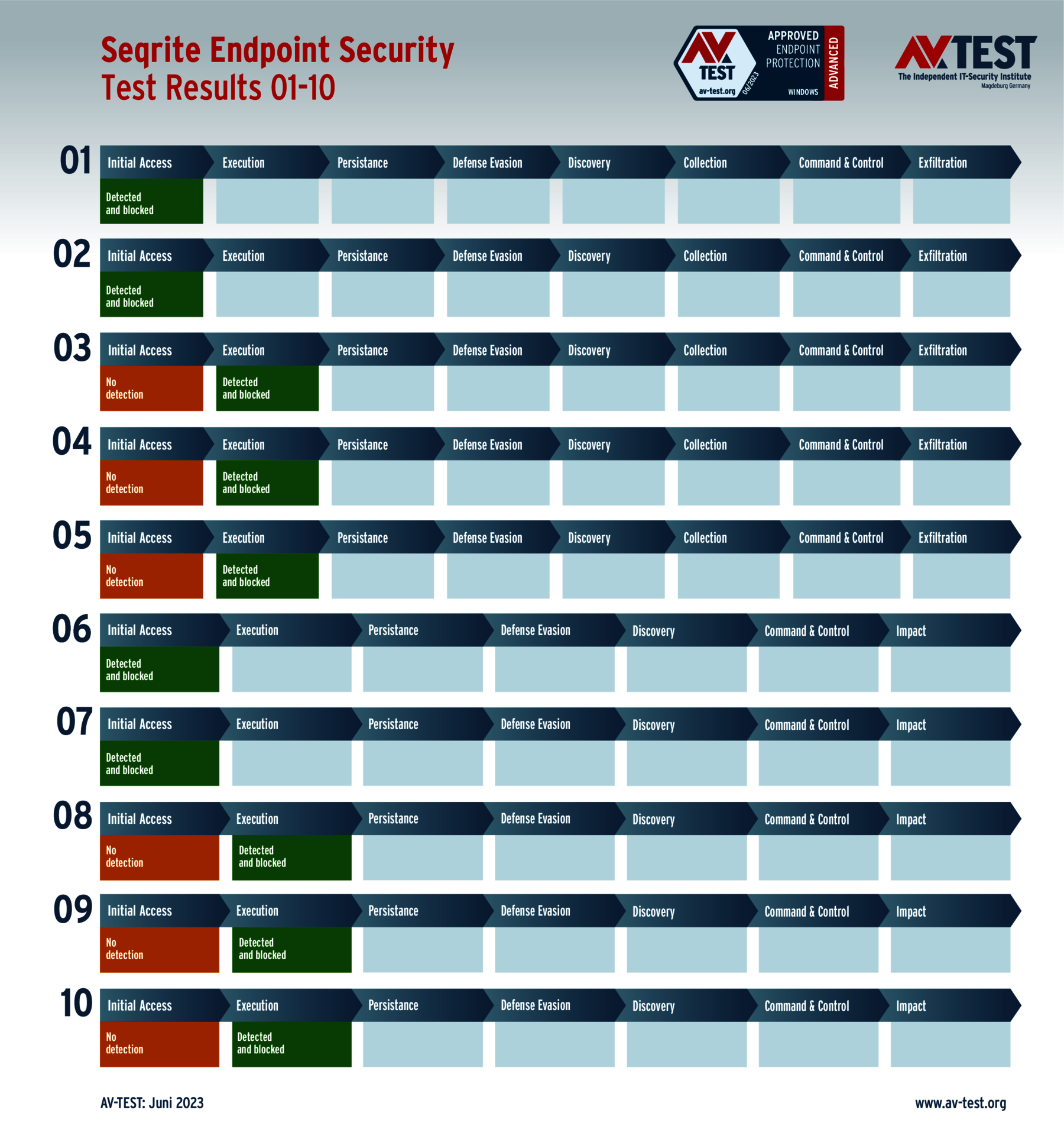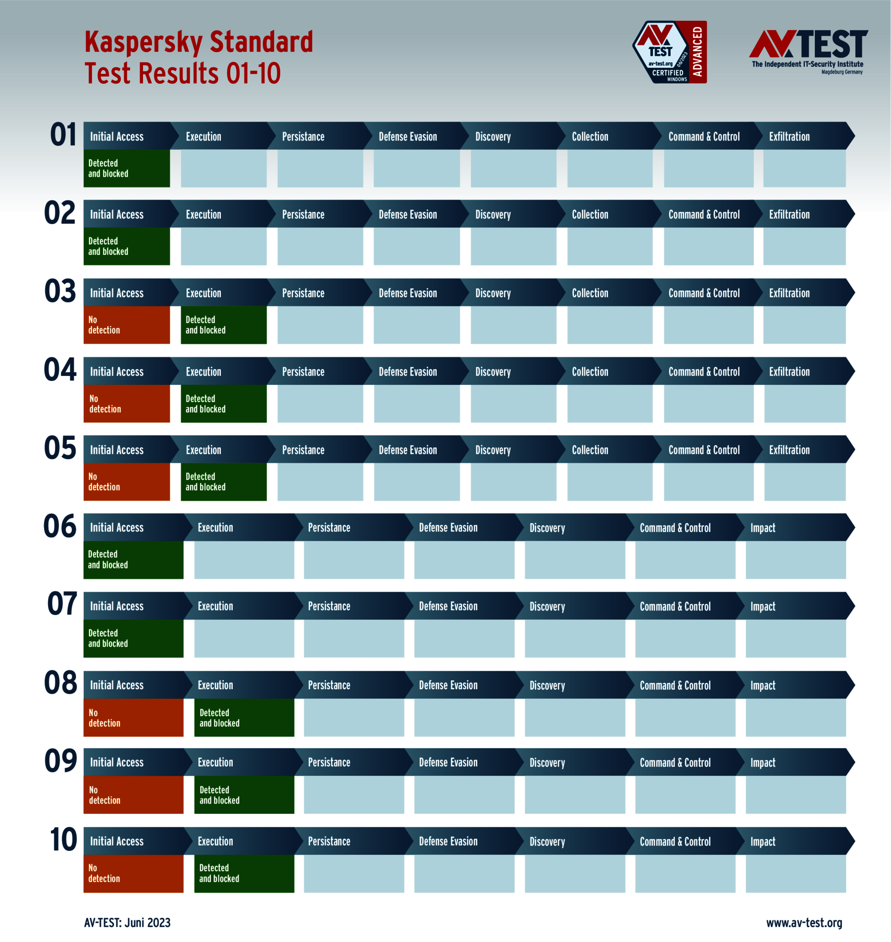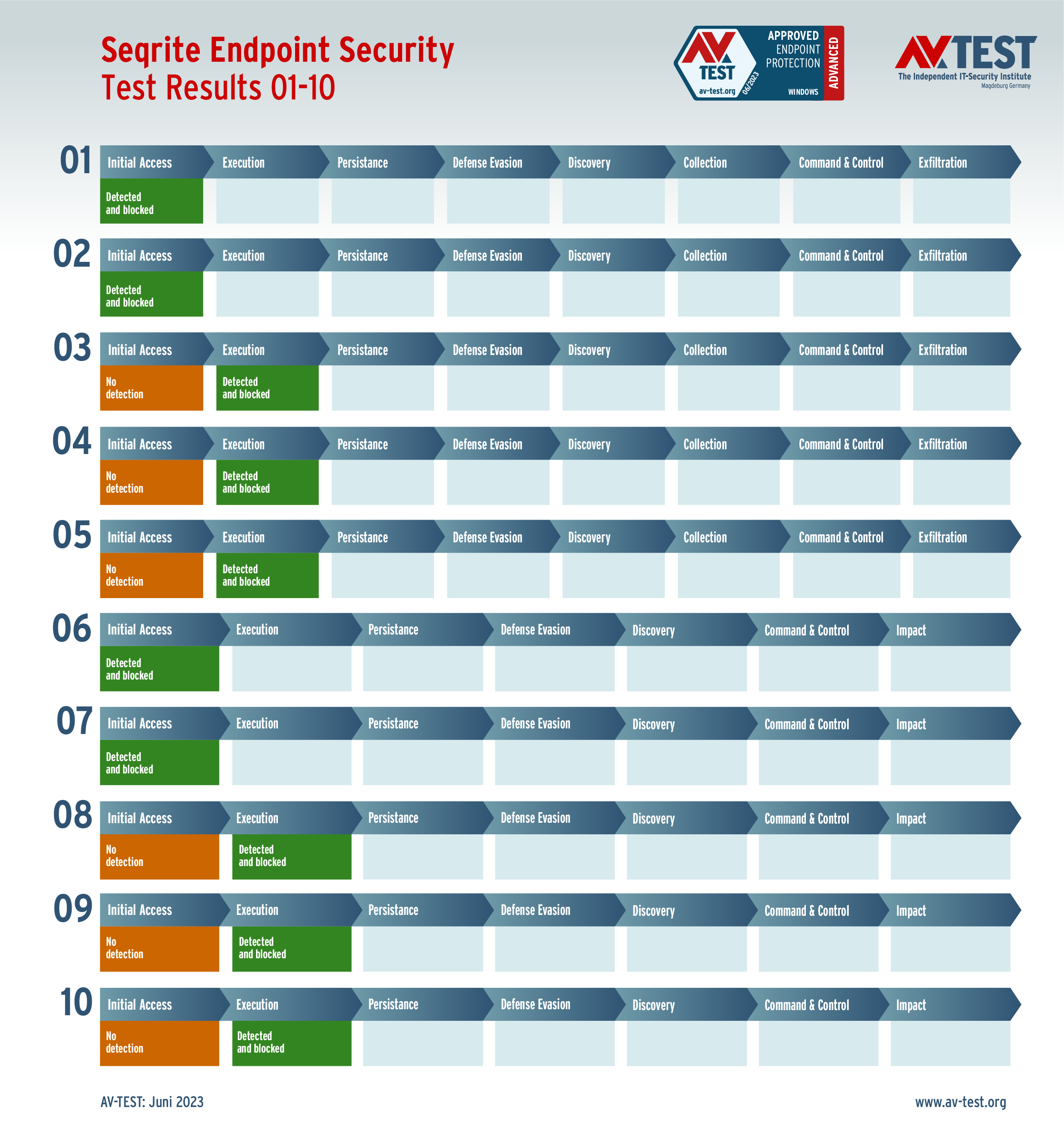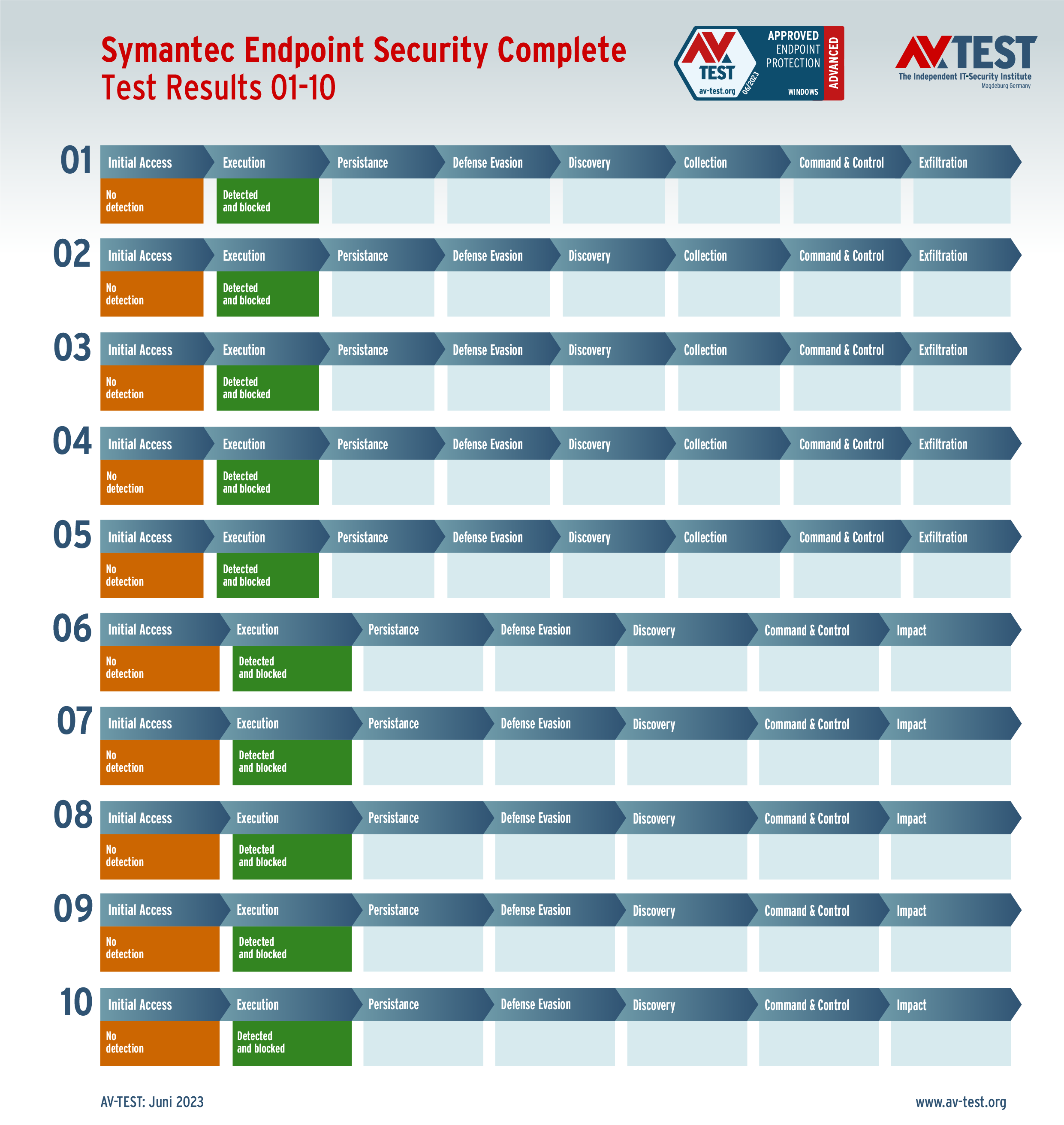 In its May-June test, AV-TEST examined 27 products under laboratory conditions in its Advanced Threat Protection test. In doing so, the experts went far beyond the classic detection test – just as a protection solution does as well. For in addition to basic detection, the products use sophisticated techniques for detection and defense, such as EDR, Endpoint Detection and Response, for example. That is why an attack may be fended off in later steps, although the detection did not trigger in the initial step.