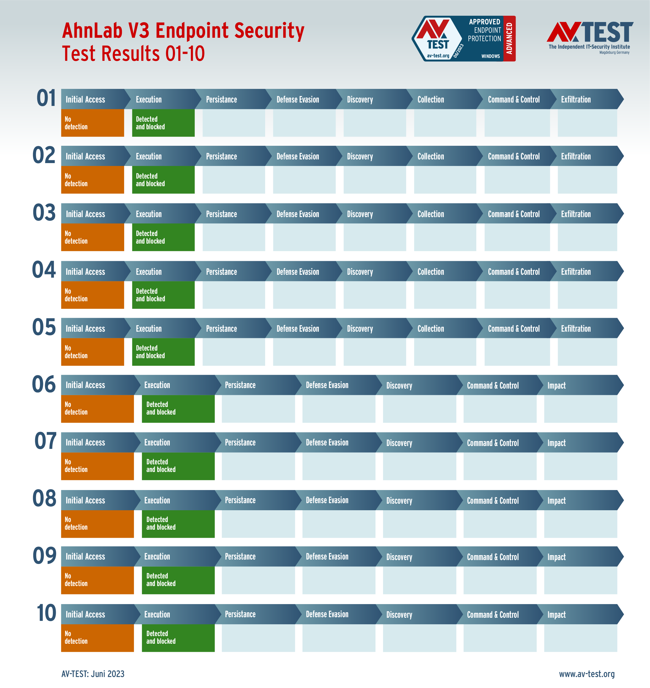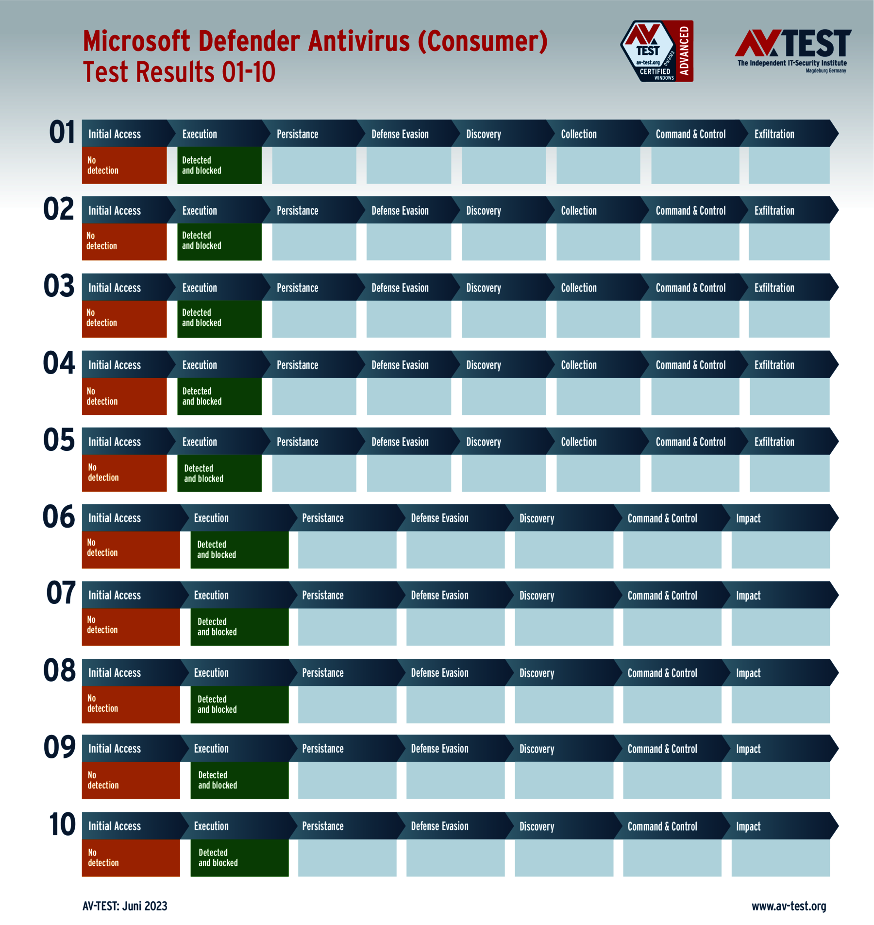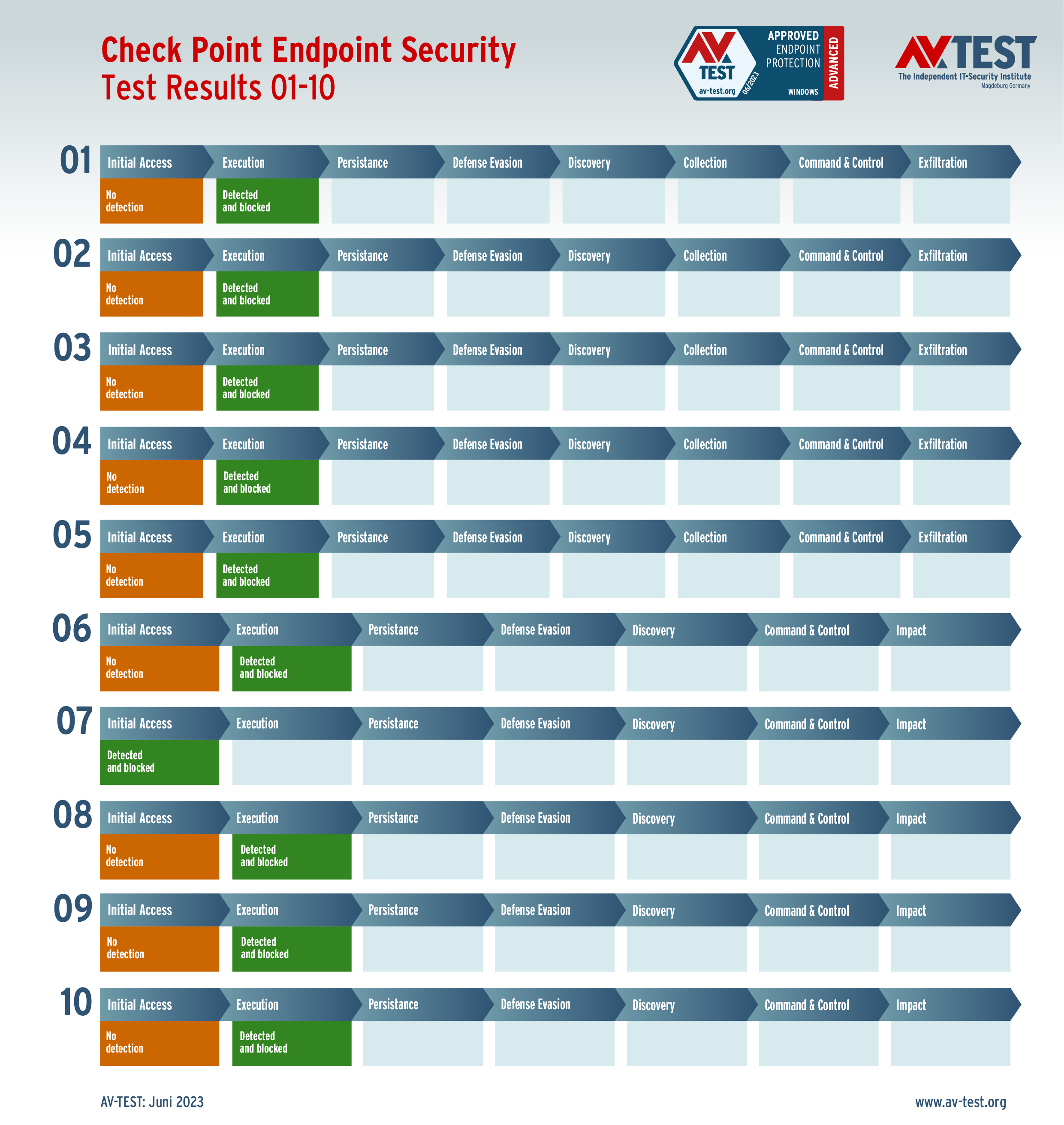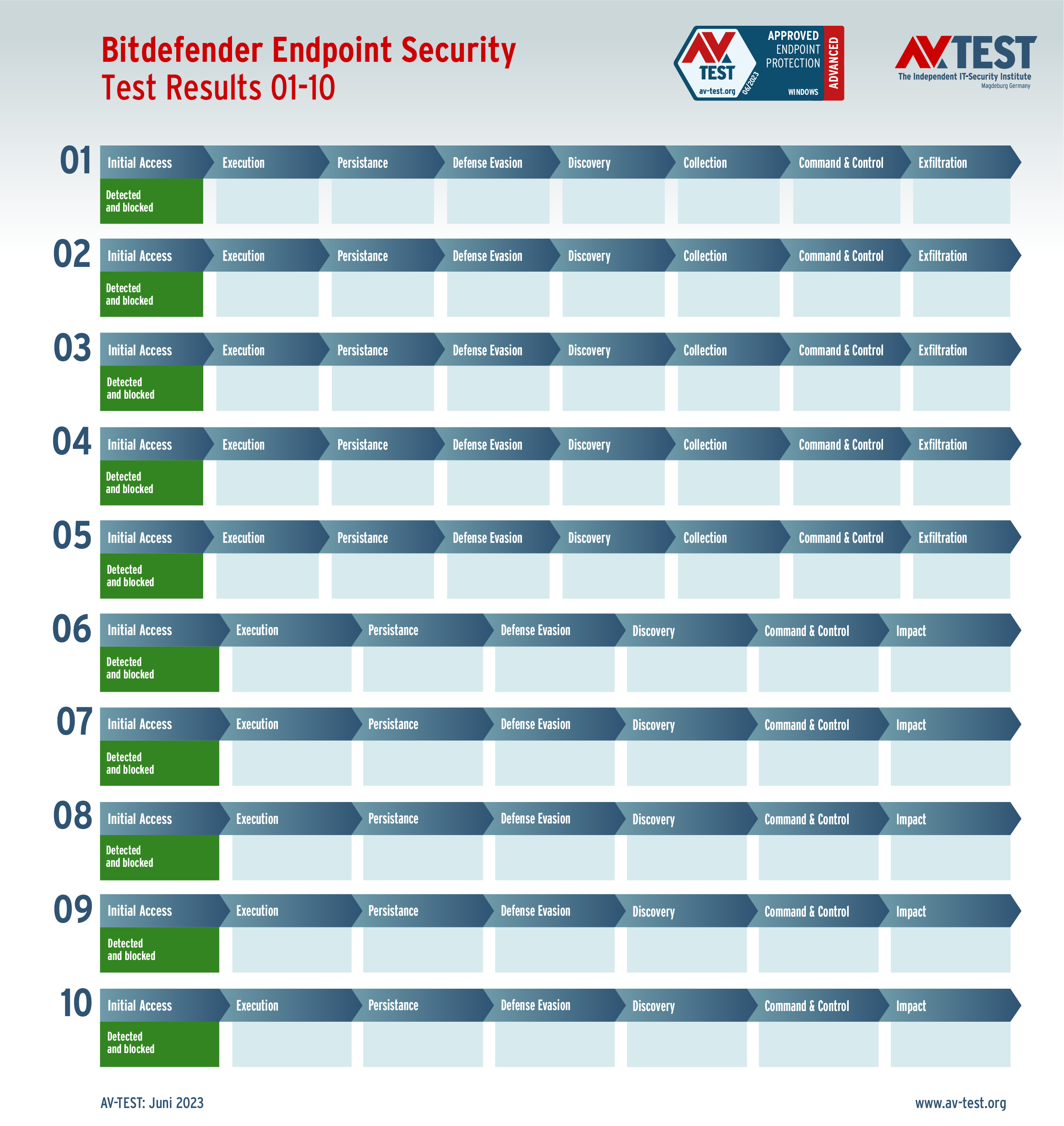 In its May-June test, AV-TEST examined 27 products under laboratory conditions in its Advanced Threat Protection test. In doing so, the experts went far beyond the classic detection test – just as a protection solution does as well. For in addition to basic detection, the products use sophisticated techniques for detection and defense, such as EDR, Endpoint Detection and Response, for example. That is why an attack may be fended off in later steps, although the detection did not trigger in the initial step.