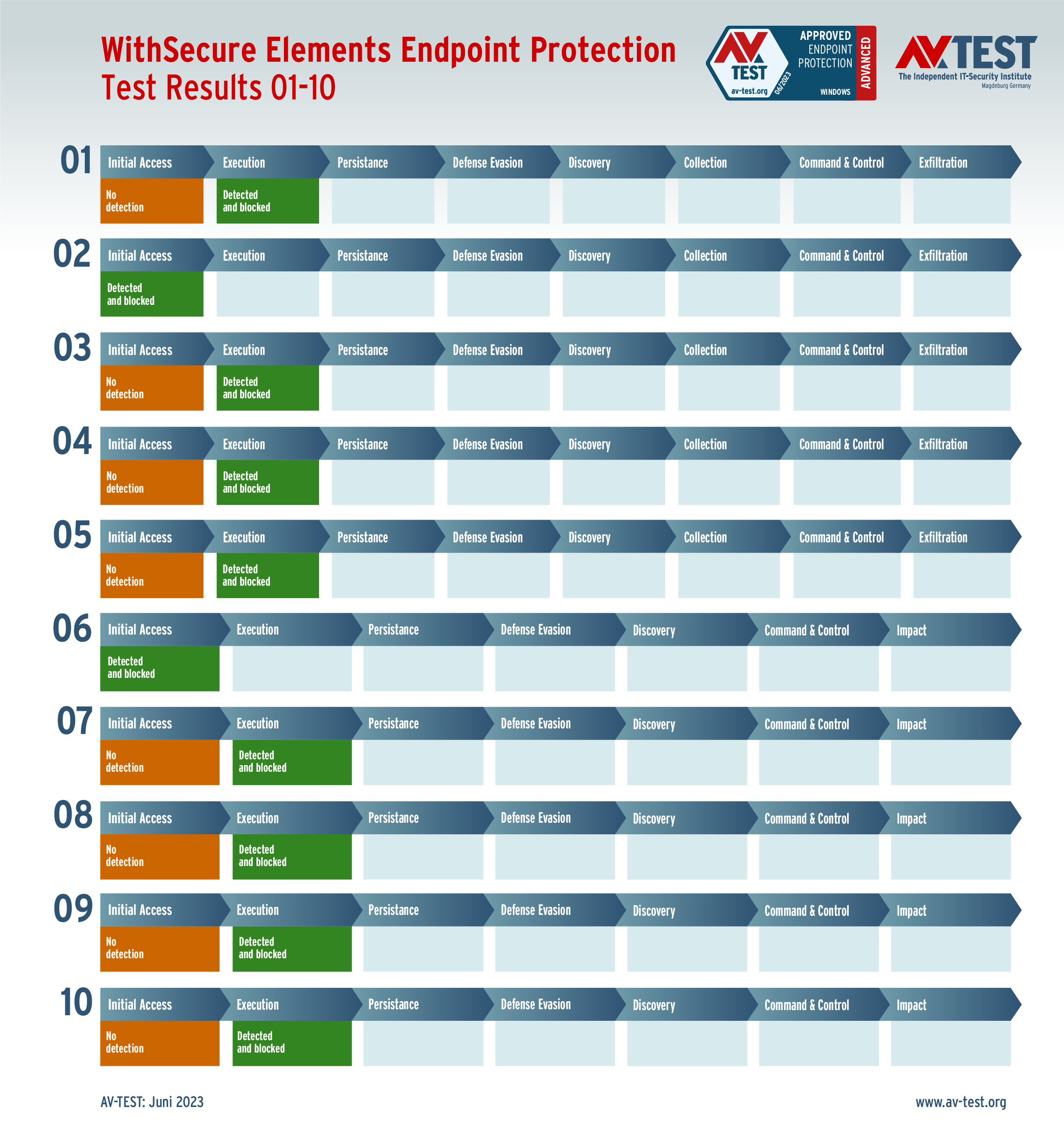 Bottom line, 26 out of 27 products in the Advanced Threat Protection test in May-June 2023 finished up with maximum number of 35 points in the protection score. That is actually a small "wow" outcome that you can't always anticipate in a test.