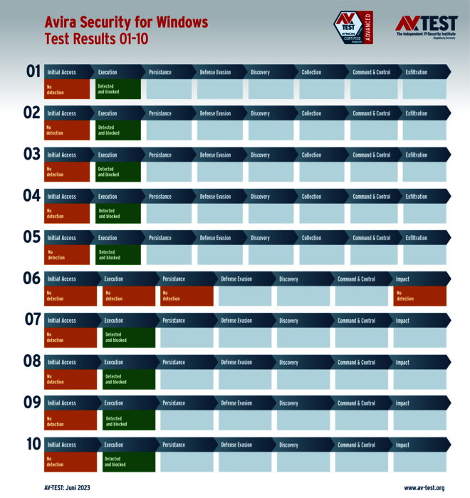 The lab evaluated each of the 27 products for consumer users and corporate users in 10 special scenarios. In the May-June test under Windows 10, this amounted to 5 scenarios with data stealers and 5 with ransomware. But the lab does not simply go through the motions. The attackers utilize various attack techniques, which are introduced here.