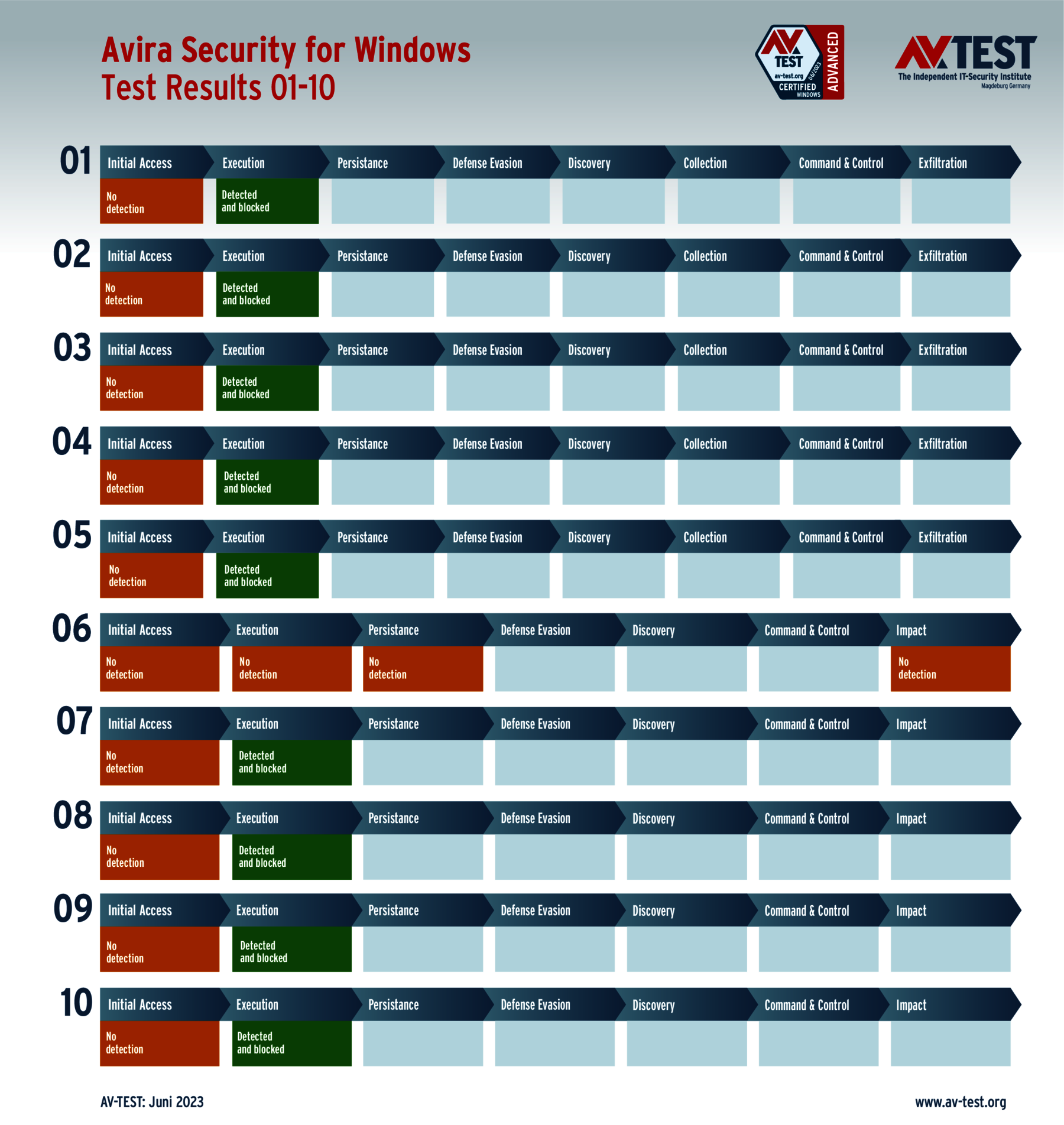 Only Avira had to concede to ransomware in one out of 10 scenarios. The protection tool did not detect it upon arrival in the system, much less when it executed. The result was encryption of the entire system and the display of the ransom note on the screen. Thus, Avira only received 32 out of 35 points.