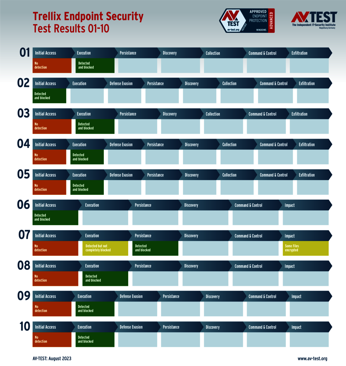 Only Trellix had difficulties in one scenario and was not able to block the attacker completely. In the end, encryption occurred in individual files, and the solution had one point taken off as a result.