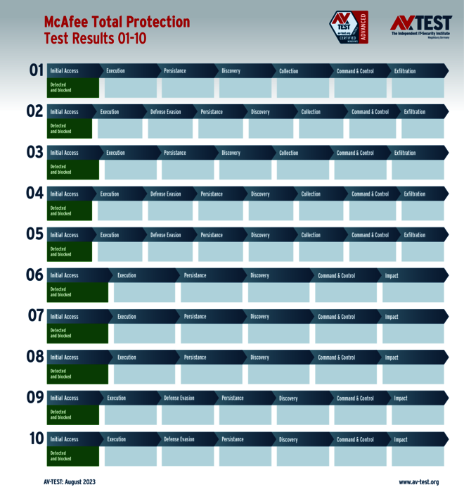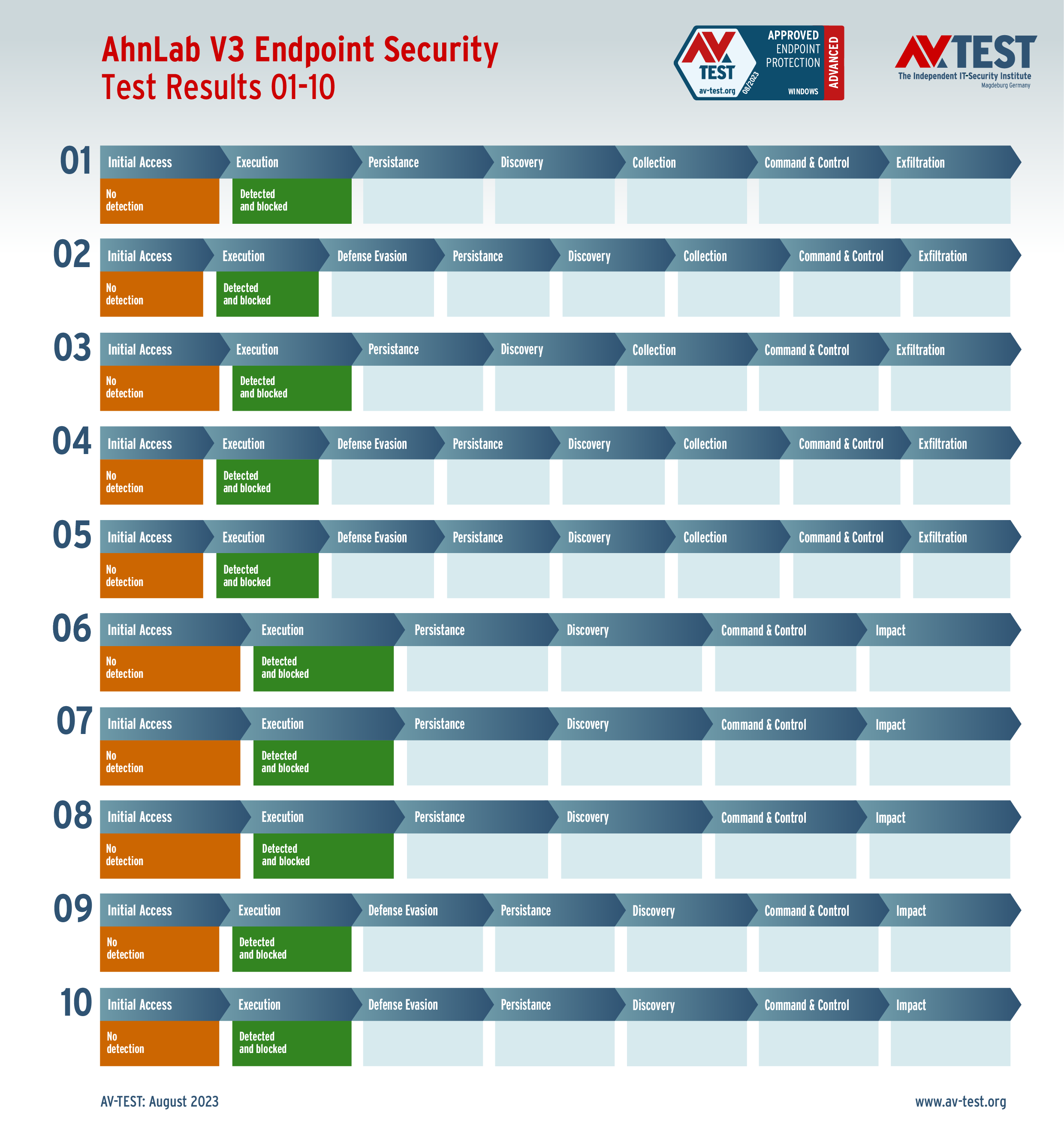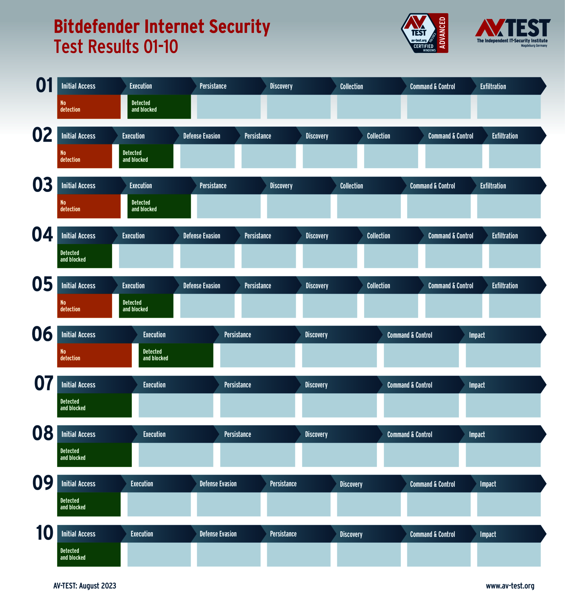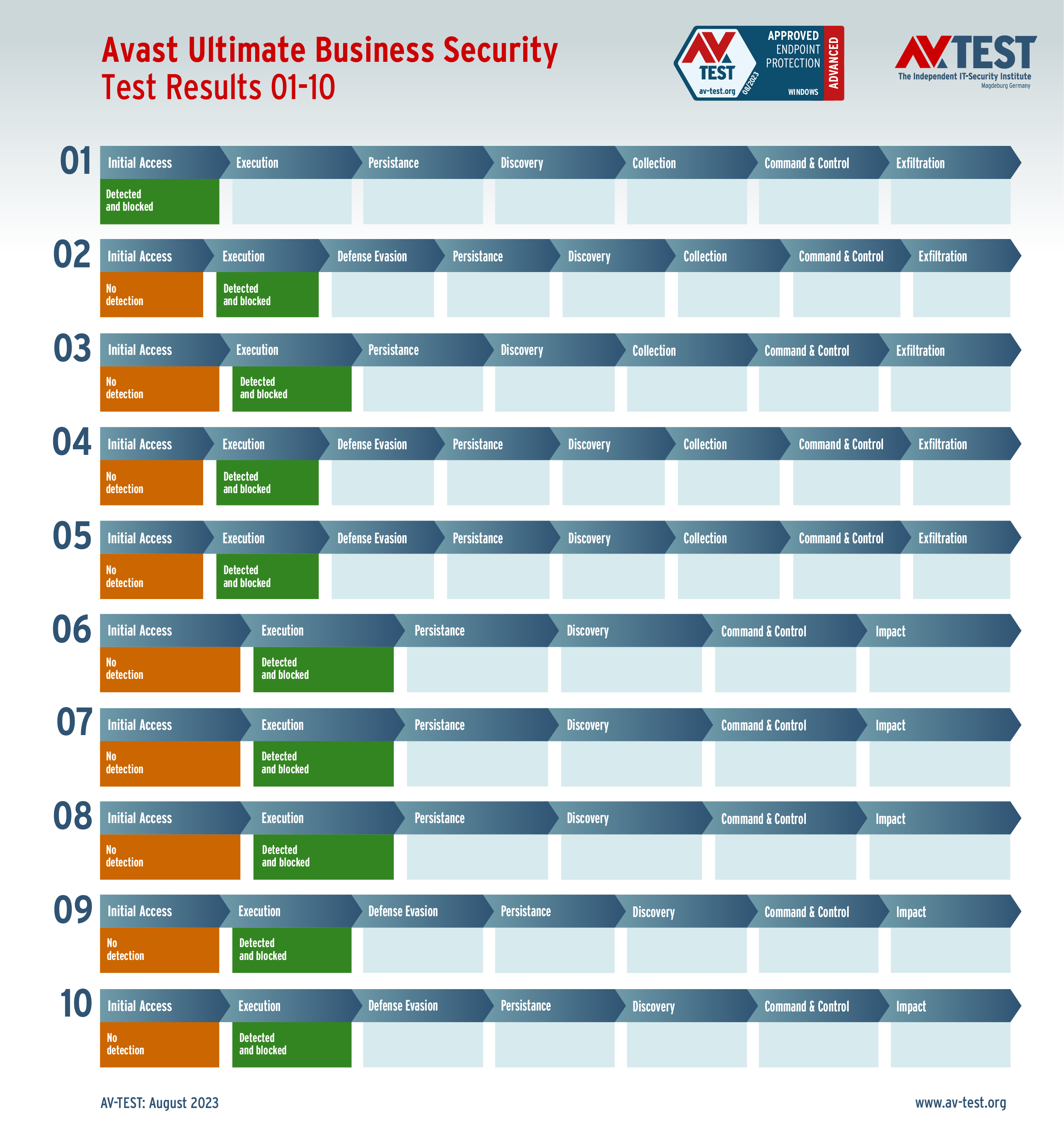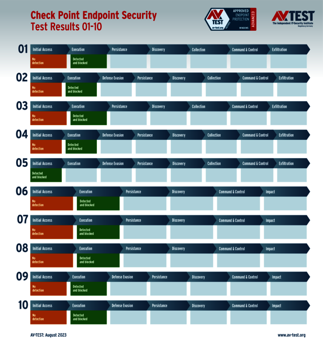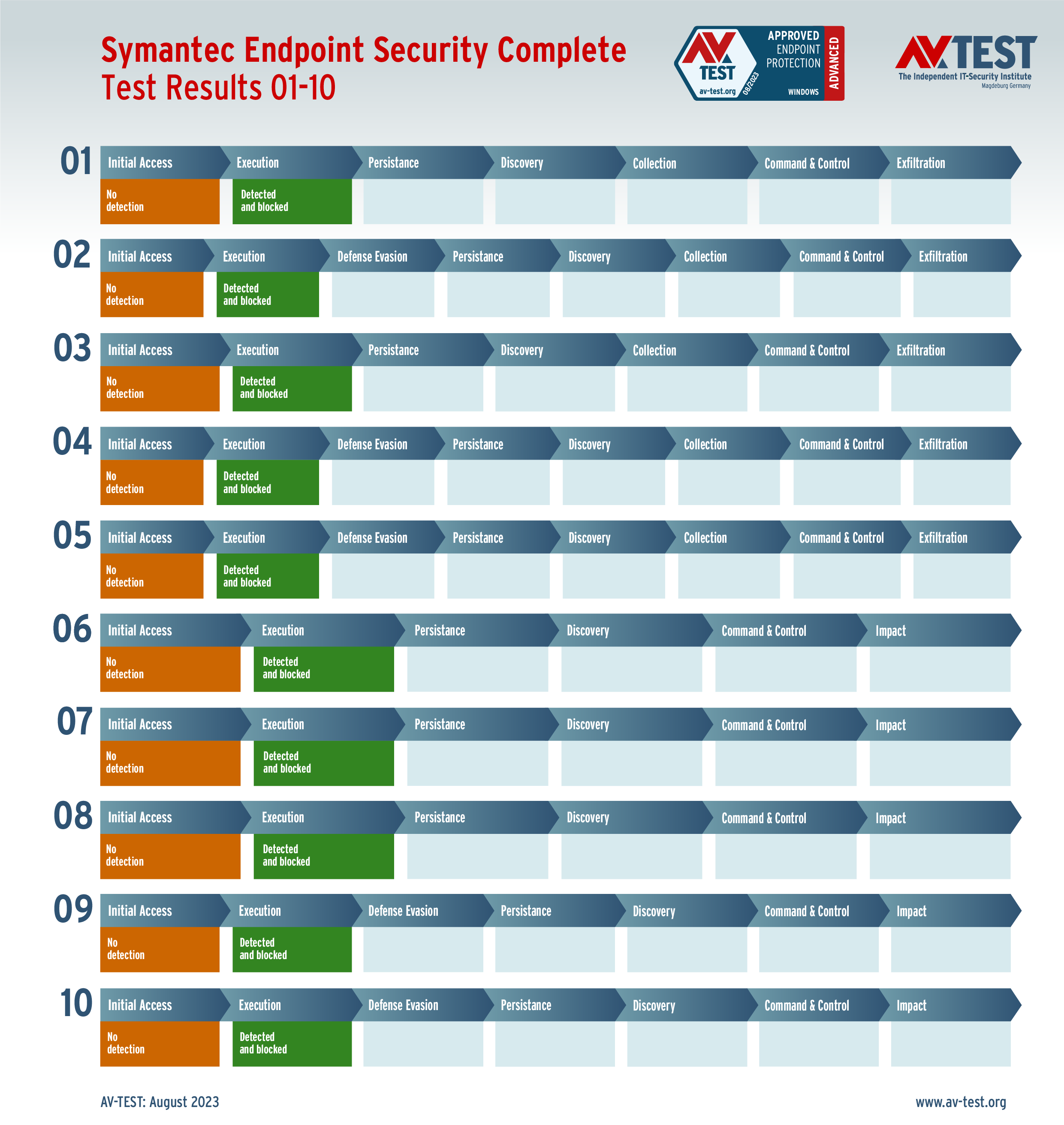 In the 10 test scenarios, the attackers deployed the latest techniques, such as DNS TXT Record, encrypted connections or even the Rust programming language. But the protection programs know all these variants and respond accordingly in the detection and defense. All in all: nearly exemplary performance!