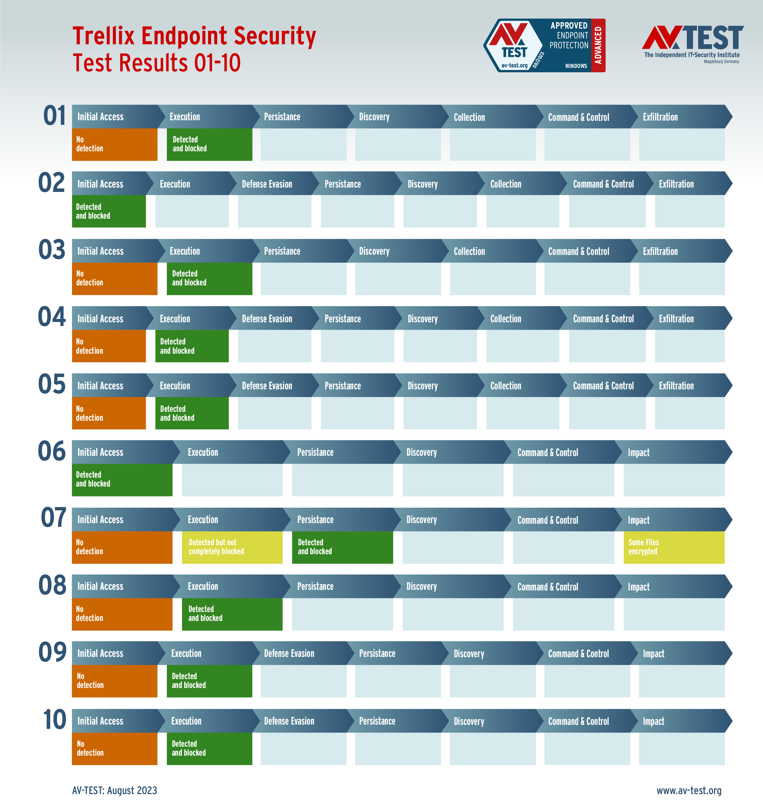 Only Trellix had difficulties in one scenario and was not able to block the attacker completely. In the end, encryption occurred in individual files, and the solution had one point taken off as a result.