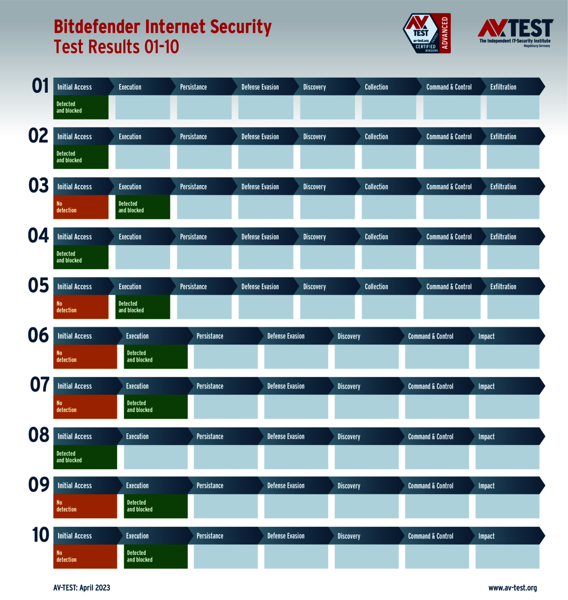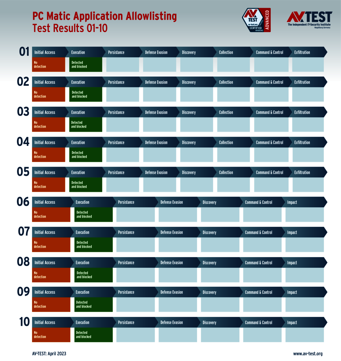 All attack scenarios are documented according to the standard of the MITRE ATT&CK database. The individual sub-techniques, for example "T1566.001", are listed in the MITRE database for "Techniques" under "Phishing: Spearphishing Attachment". Each test step is thus defined among the experts and can be logically understood. In addition, all attack techniques are explained, along with how successful the malware is.