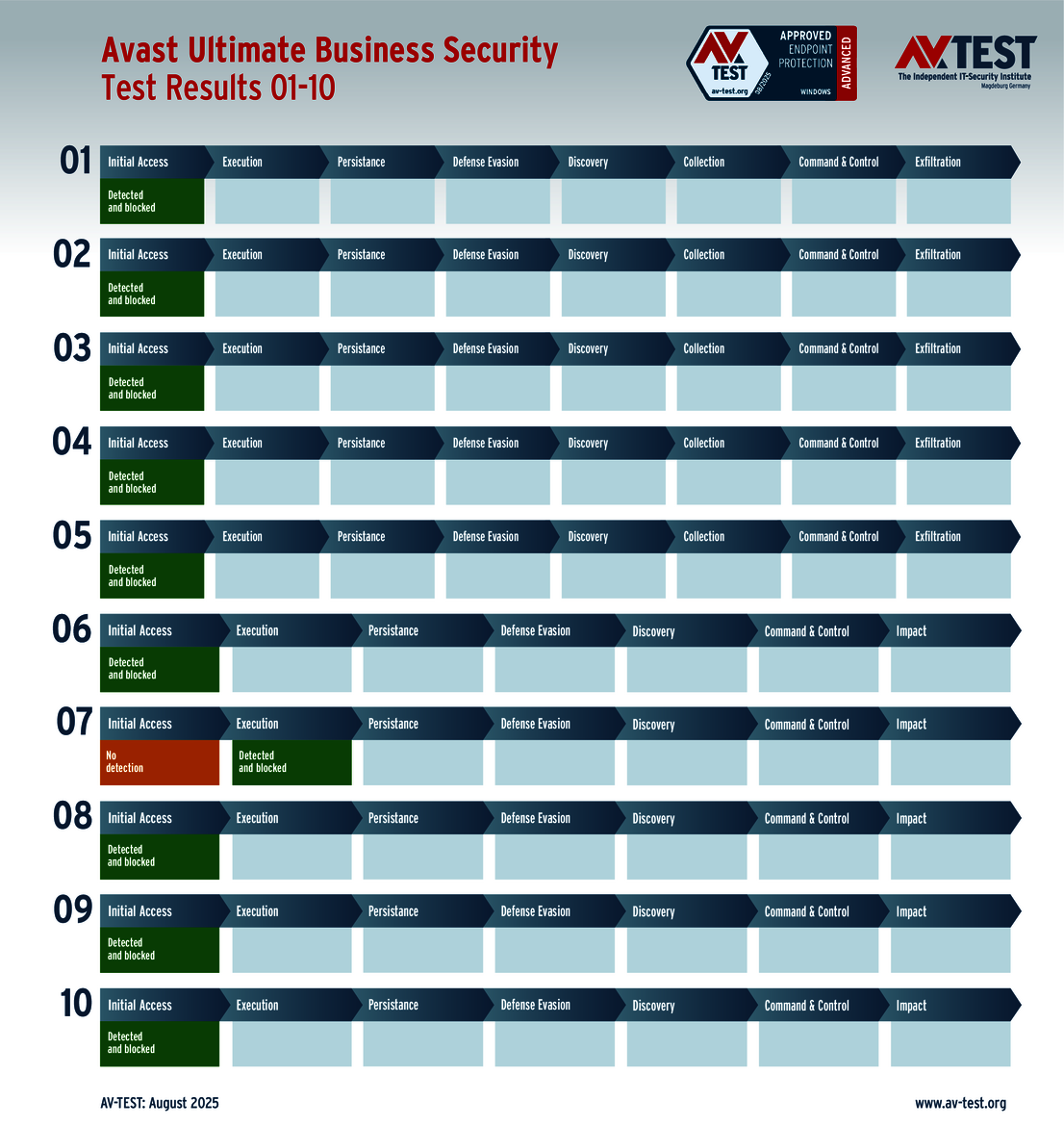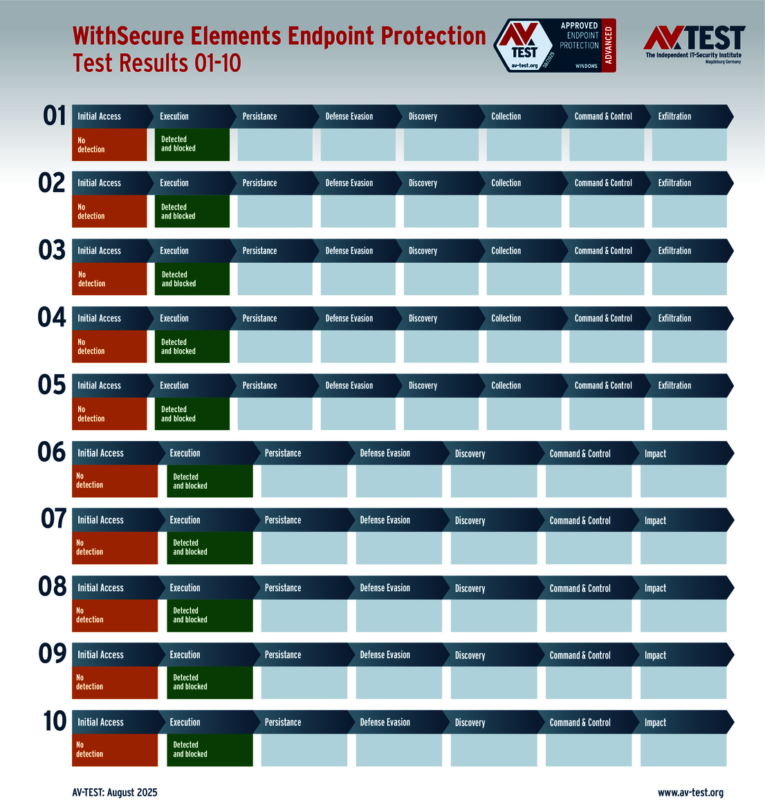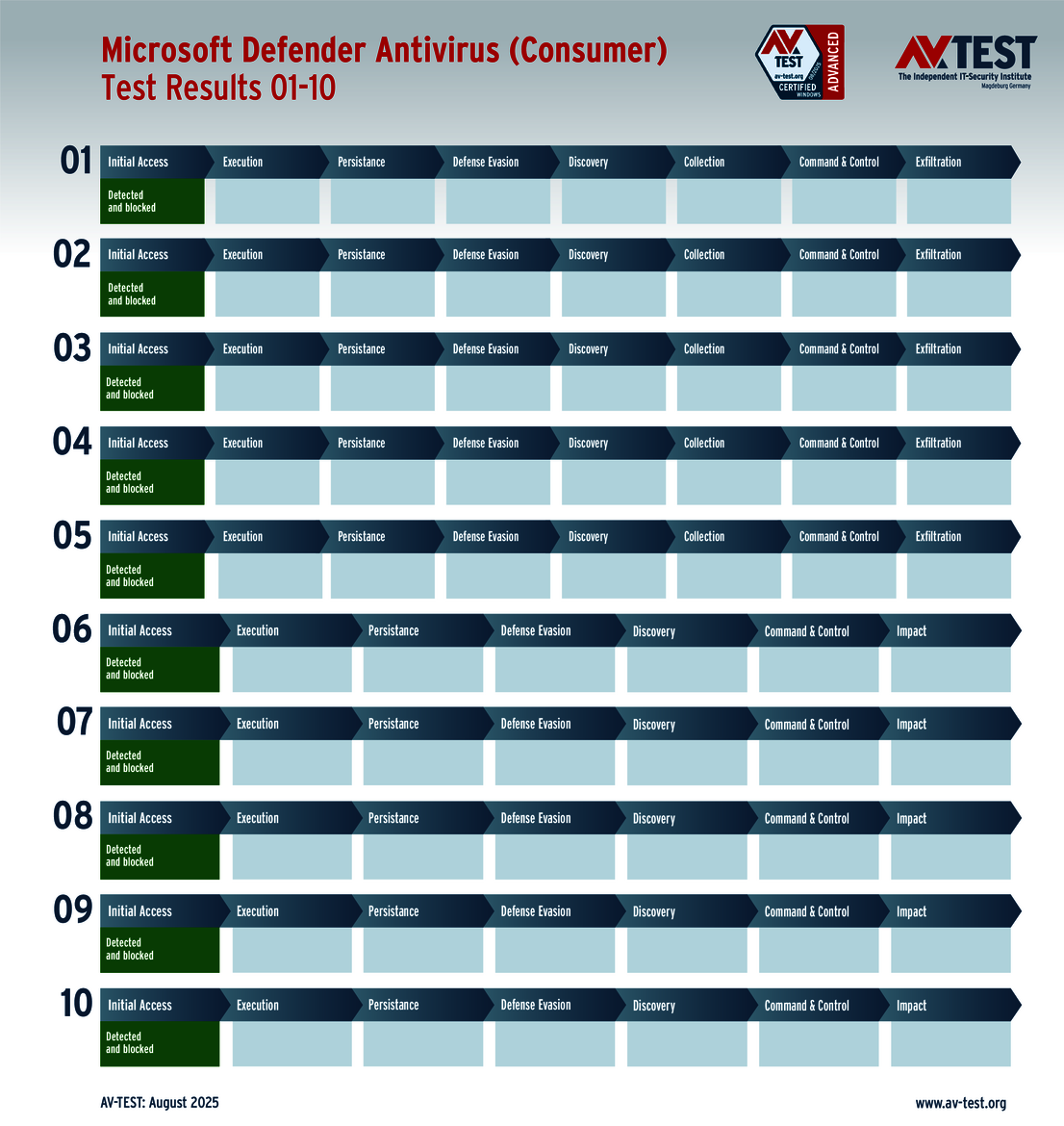 The techniques used for the attacks by these groups of malware are sophisticated, but they are not insurmountable. This is also evidenced by the vast AV-ATLAS database from AV-TEST, which has already detected and registered nearly one billion samples of malware for Windows systems. Nonetheless, attackers are always uncovering new vulnerabilities, using devious attack variants, or combining both to exploit unwitting systems. Which means that good security software also needs to identify these new techniques and provide protection to the systems. Sometimes, it’s not enough to just identify the malware. Some attackers use obfuscation to conceal themselves in seemingly harmless processes, enabling them to evade detection in a scan for malware. Does that mean it’s time to throw in the towel? This was precisely the question resolved by the Advanced Threat Protection (ATP) test. The testers followed 10 attacks with ransomware and infostealers step by step in this live test of systems running Windows 10. The malware in the testing employed the latest in attack technology to evade detection. And when they attempt this feat, the downstream defense mechanisms need to intervene and stop the attack. The ATP test clearly shows how well the different solutions performed in the various stages.