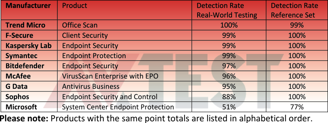 Most corporate solutions deliver high detection rates in tests (AV-TEST, last amended in January 2015).