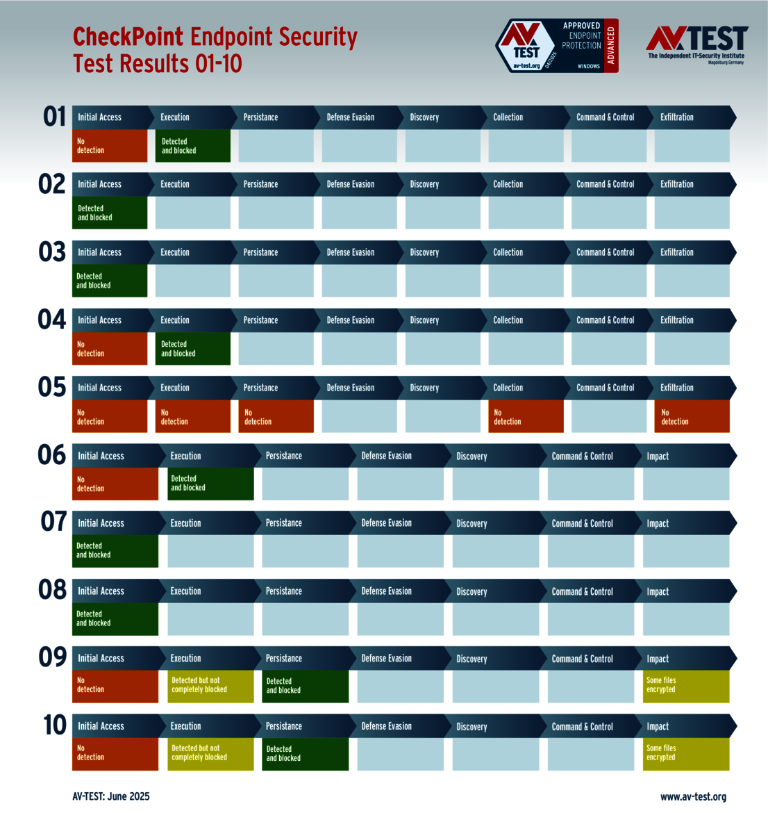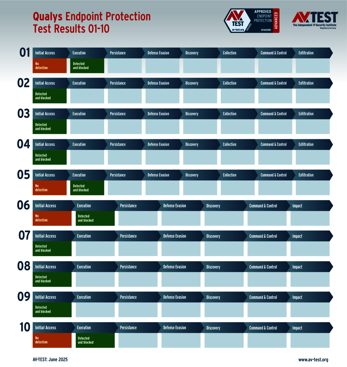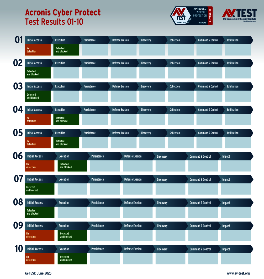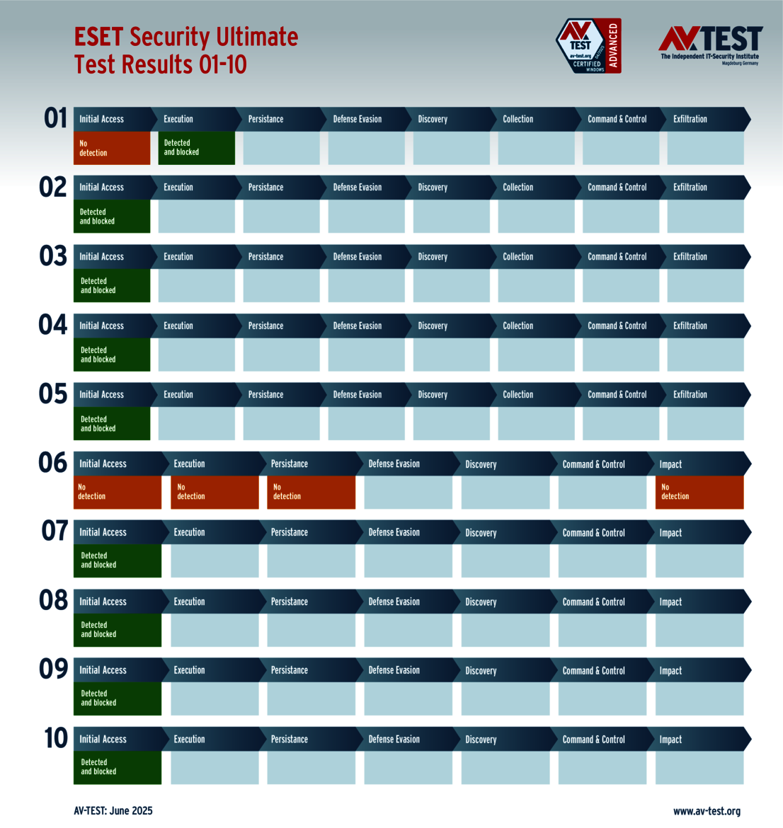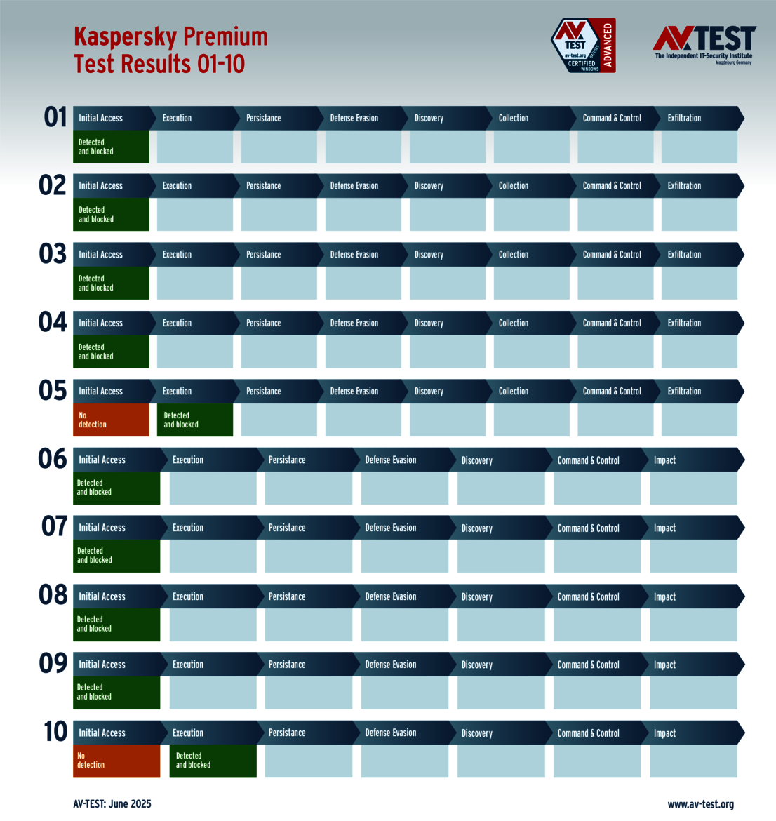 The team of experts documents all defensive steps – whether successful or not – for each product in a matrix in accordance with the MITRE ATT&CK standard. This allows the test process to be precisely tracked.