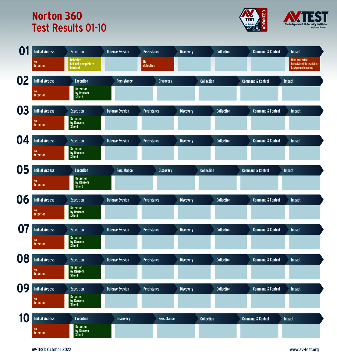 Norton experienced a similar issue in one instance. While the ransomware was detected, the encryption of the system was not stopped: 27.5 points.
