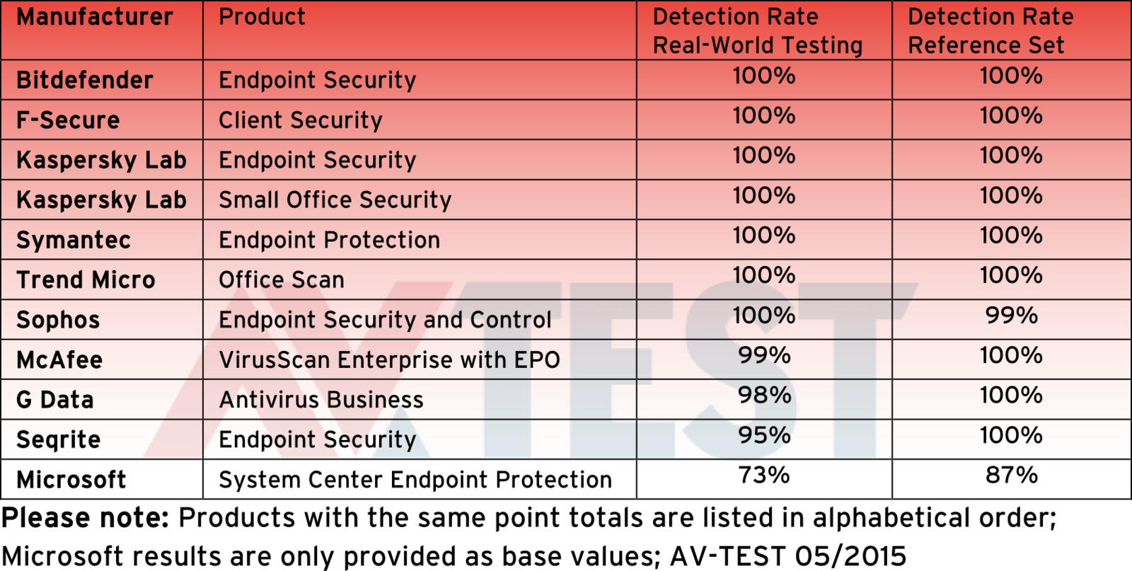Company owners seeking a reliable protection solution for Windows have many good products to choose from. In the current evaluation by AV-TEST, 10 protection solutions for the corporate network were put to the test. As an 11th product, the security module Endpoint Protection 2012 from Microsoft was also examined. It is part of the Microsoft Management Suite System Center 2012 and is bundled free of charge. Windows 7 was used as a test platform.