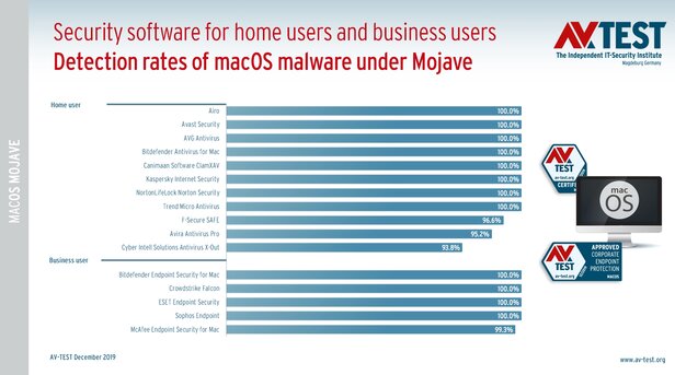 It was only a few years ago that online and print media specialized in Mac computing played down the dangers posed to the Mac by malware. In the meantime, people have developed a new awareness there as well, reporting more and more often about dangerous malware for MacOS and calling attention to the constant increase in attackers. Anyone who still remains skeptical about these warnings would do well to consider the reports of Kaspersky: Already in the first six months of 2019, Kaspersky (alone) registered six million phishing attacks on Apple users. In order to gear up decisively against these attacks, the experts recommend good protection software. The laboratory of AV-TEST evaluated 11 packages for private users and 5 solutions for corporate users in terms of their protection, performance and usability.