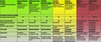 The iComfort and tapHome sets, on the other hand, are not protected against attacks within their own network, while the iConnect and XAVAX MAX! kits are rather powerless against attacks within their own network and external attacks.