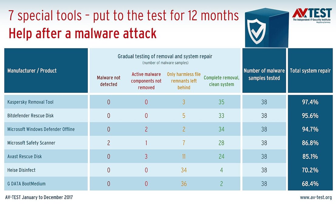 Security suites and special tools claim the capability of restoring everything to normal after a virus attack. AV-TEST examined the true capabilities of 9 suites and 7 tools over a 12-month period. Presenting: the true performers.