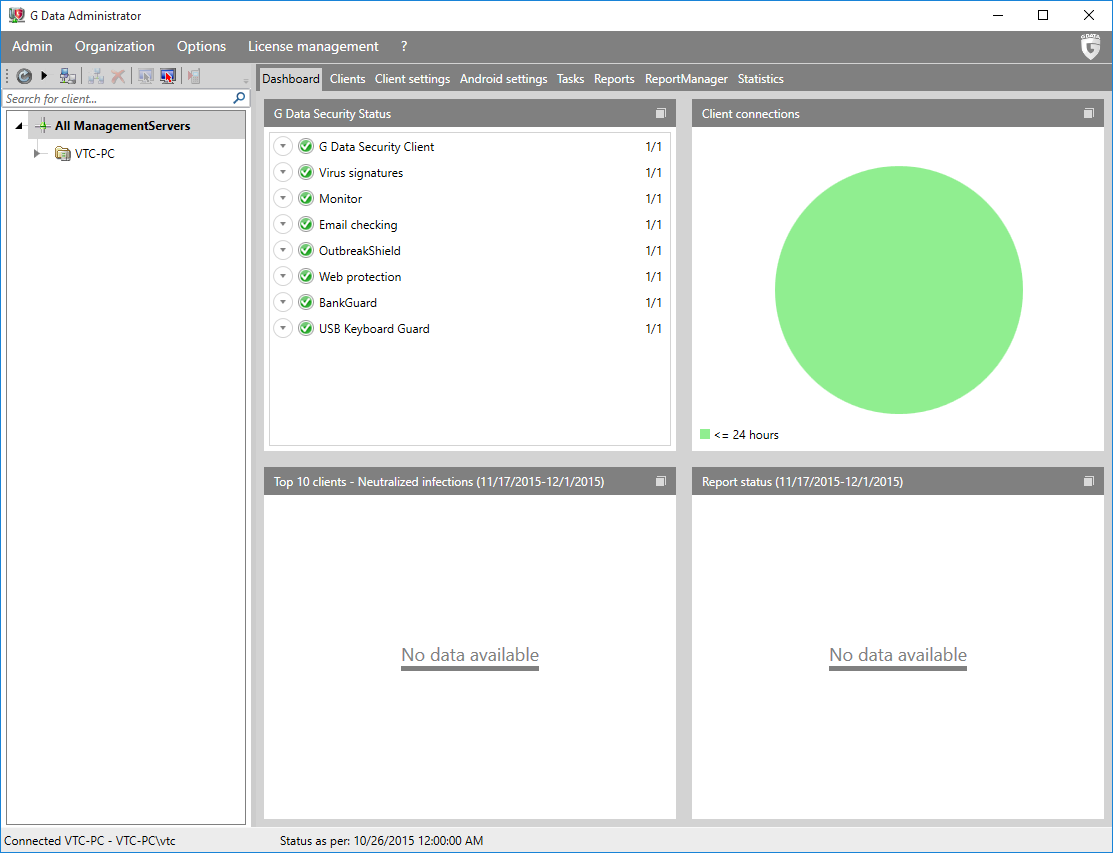 urante los meses de noviembre y diciembre de 2015, en AV-TEST hemos examinado la configuración establecida por los proveedores de 11 productos de seguridad destinados a las empresas (Endpoint Protection). En las pruebas siempre hemos utilizado las versiones más actuales de los productos de acceso al público las cuales se pudieron actualizar en cualquier momento y también utilizar sus servicios "en la nube”. Solo hemos tenido en cuenta escenarios de pruebas realistas y hemos comprobado los productos contra las amenazas actuales. Los productos han tenido que demostrar sus capacidades aplicando todas sus funciones y niveles de protección.