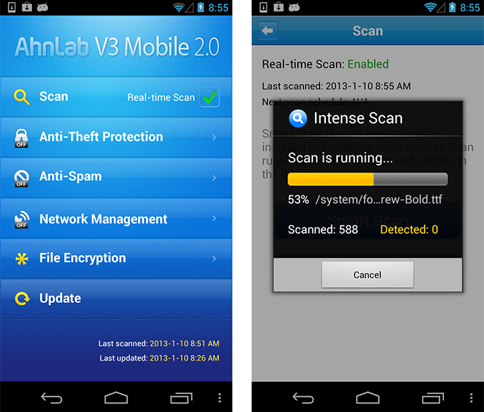 En enero 2013, en AV-TEST hemos examinado 22 productos de seguridad para Android. En las pruebas siempre hemos utilizado las versiones más actuales de los productos de acceso al público las cuales se pudieron actualizar en cualquier momento y también utilizar sus servicios "en la nube”. Solo hemos tenido en cuenta escenarios de pruebas realistas y hemos comprobado los productos contra las amenazas actuales. Los productos han tenido que demostrar sus capacidades aplicando todas sus funciones y niveles de protección.