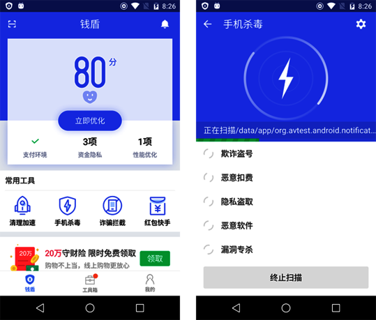 En enero 2018, en AV-TEST hemos examinado 20 productos de seguridad para Android. En las pruebas siempre hemos utilizado las versiones más actuales de los productos de acceso al público las cuales se pudieron actualizar en cualquier momento y también utilizar sus servicios "en la nube”. Solo hemos tenido en cuenta escenarios de pruebas realistas y hemos comprobado los productos contra las amenazas actuales. Los productos han tenido que demostrar sus capacidades aplicando todas sus funciones y niveles de protección.
