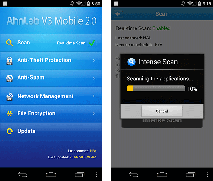 En julio 2014, en AV-TEST hemos examinado 29 productos de seguridad para Android. En las pruebas siempre hemos utilizado las versiones más actuales de los productos de acceso al público las cuales se pudieron actualizar en cualquier momento y también utilizar sus servicios "en la nube”. Solo hemos tenido en cuenta escenarios de pruebas realistas y hemos comprobado los productos contra las amenazas actuales. Los productos han tenido que demostrar sus capacidades aplicando todas sus funciones y niveles de protección.