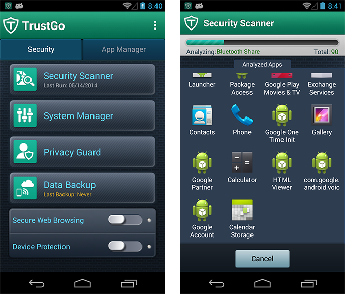 En mayo 2014, en AV-TEST hemos examinado 30 productos de seguridad para Android. En las pruebas siempre hemos utilizado las versiones más actuales de los productos de acceso al público las cuales se pudieron actualizar en cualquier momento y también utilizar sus servicios "en la nube”. Solo hemos tenido en cuenta escenarios de pruebas realistas y hemos comprobado los productos contra las amenazas actuales. Los productos han tenido que demostrar sus capacidades aplicando todas sus funciones y niveles de protección.