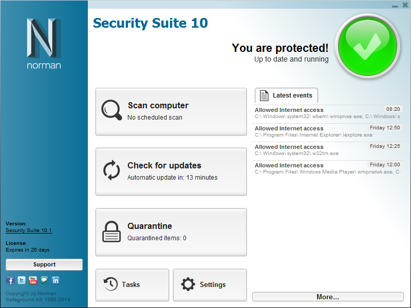 Durante los meses de julio y agosto de 2014, en AV-TEST hemos examinado la configuración estándar de 24 productos de seguridad destinados a los usuarios finales. En las pruebas siempre hemos utilizado las versiones más actuales de los productos de acceso al público las cuales se pudieron actualizar en cualquier momento y también utilizar sus servicios "en la nube”. Solo hemos tenido en cuenta escenarios de prueba realistas y hemos comprobado los productos contra las amenazas actuales. Los productos han tenido que demostrar sus capacidades aplicando todas sus funciones y niveles de protección.