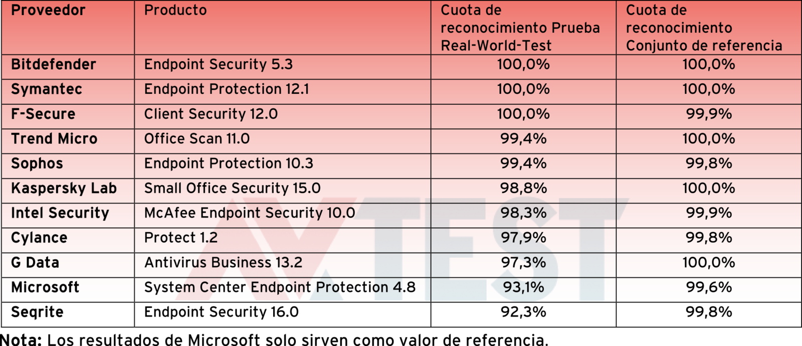 Tasas de detección de las soluciones empresariales