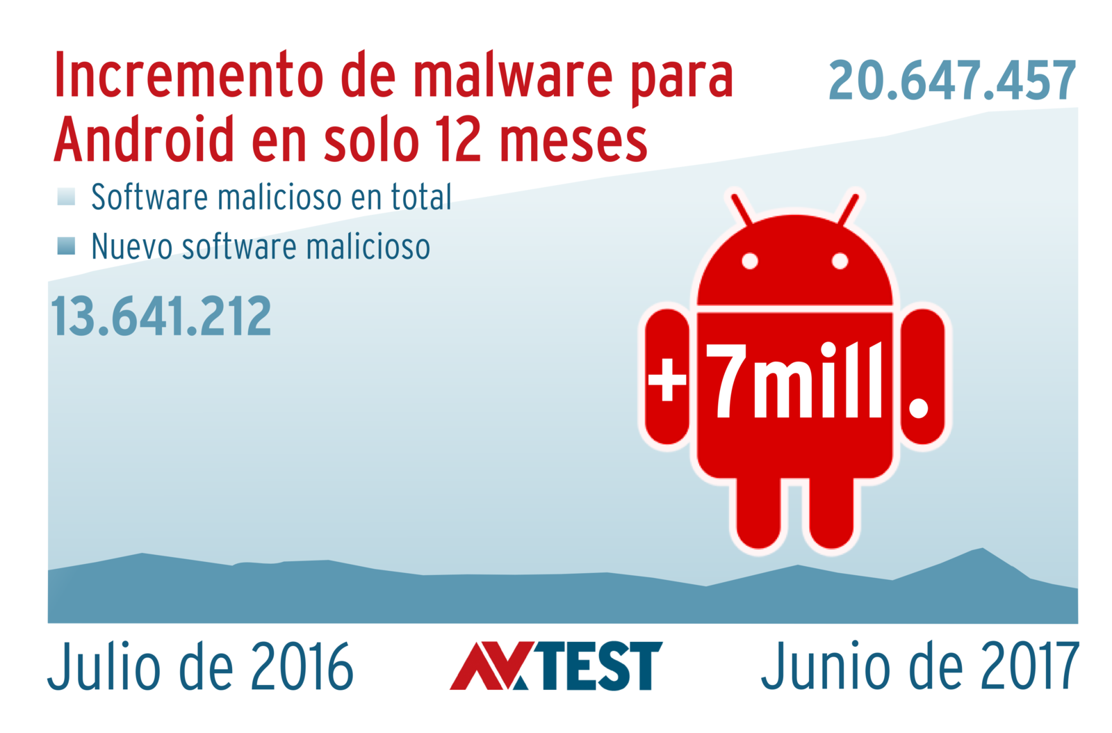 La cantidad de dispositivos Android en funcionamiento en todo el mundo impresiona. 2500 millones de dispositivos es la cifra que indicaban las estadísticas en marzo de 2017. Igual de apabullante es también el número de malwares registrados actualmente en la base de datos de AV-TEST: más de 20 millones. El incremento tan solo de julio de 2016 a junio de 2017 fue de 7 millones de programas maliciosos. En opinión de muchos expertos, quien aún considere innecesario instalar una aplicación de seguridad para Android, cargará después con la culpa.