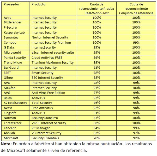 Los paquetes de protección de Avira (versión de pago), Bitdefender, F-Secure, Kaspersky Lab, Symantec y Comodo superaron la prueba con un reconocimiento del 100 por ciento.