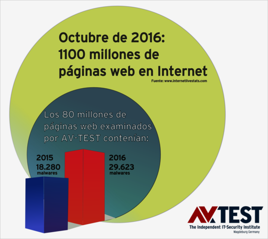 En realidad es imposible calcular cuántas páginas infectadas con malware vagan por Internet, pero los valores recopilados en las pruebas a lo largo de los años muestran que el número de páginas afectadas por malware crece constantemente. Del 2015 a agosto de 2016 ya se registra un aumento de más del 60 por ciento en un pool de 80 millones de páginas examinadas.